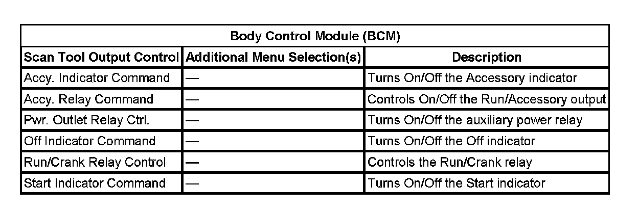 Scan Tool Output Controls