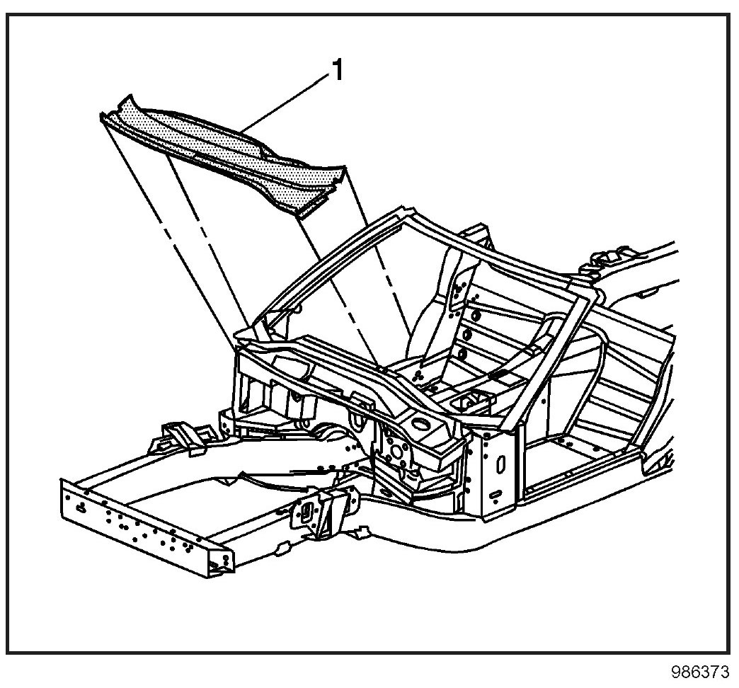 13. Apply a consistent bead of structural adhesive (1) to the bonding surfaces to mate with the upper plenum. Refer to Sheet Molded Compound (SMC) Panel Bonding.