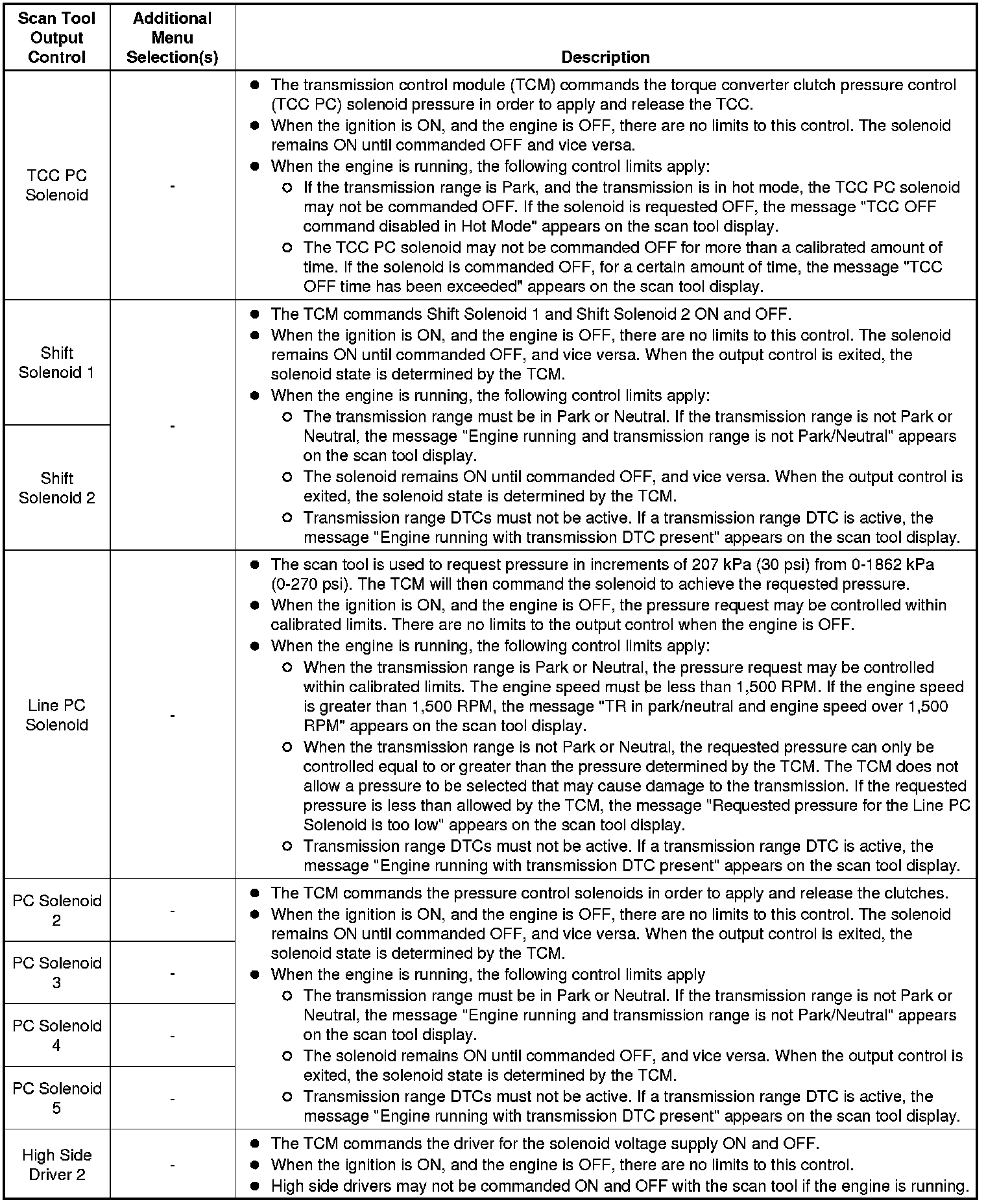 Scan Tool Output Controls
