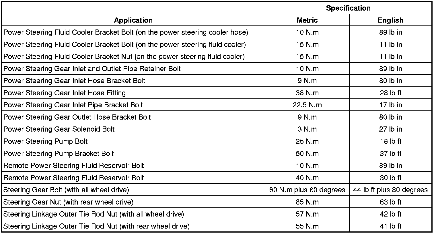 Fastener Tightening Specifications