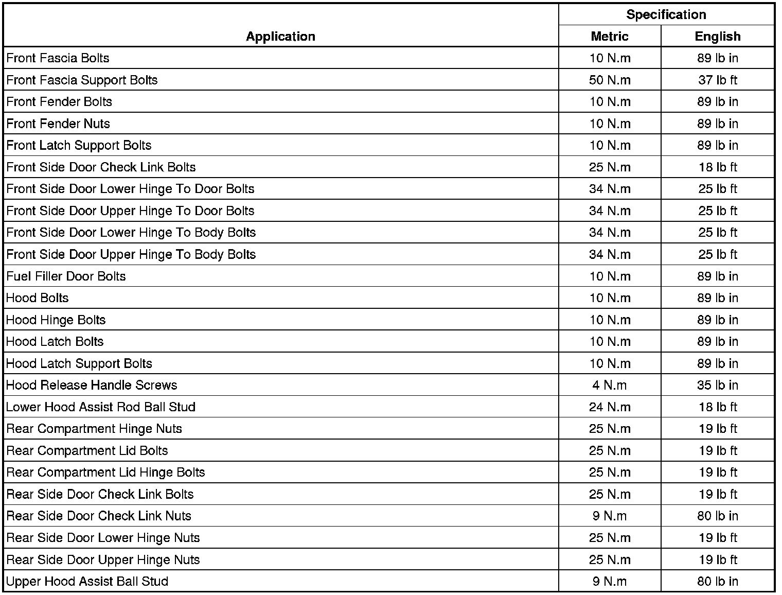 Fastener Tightening Specifications