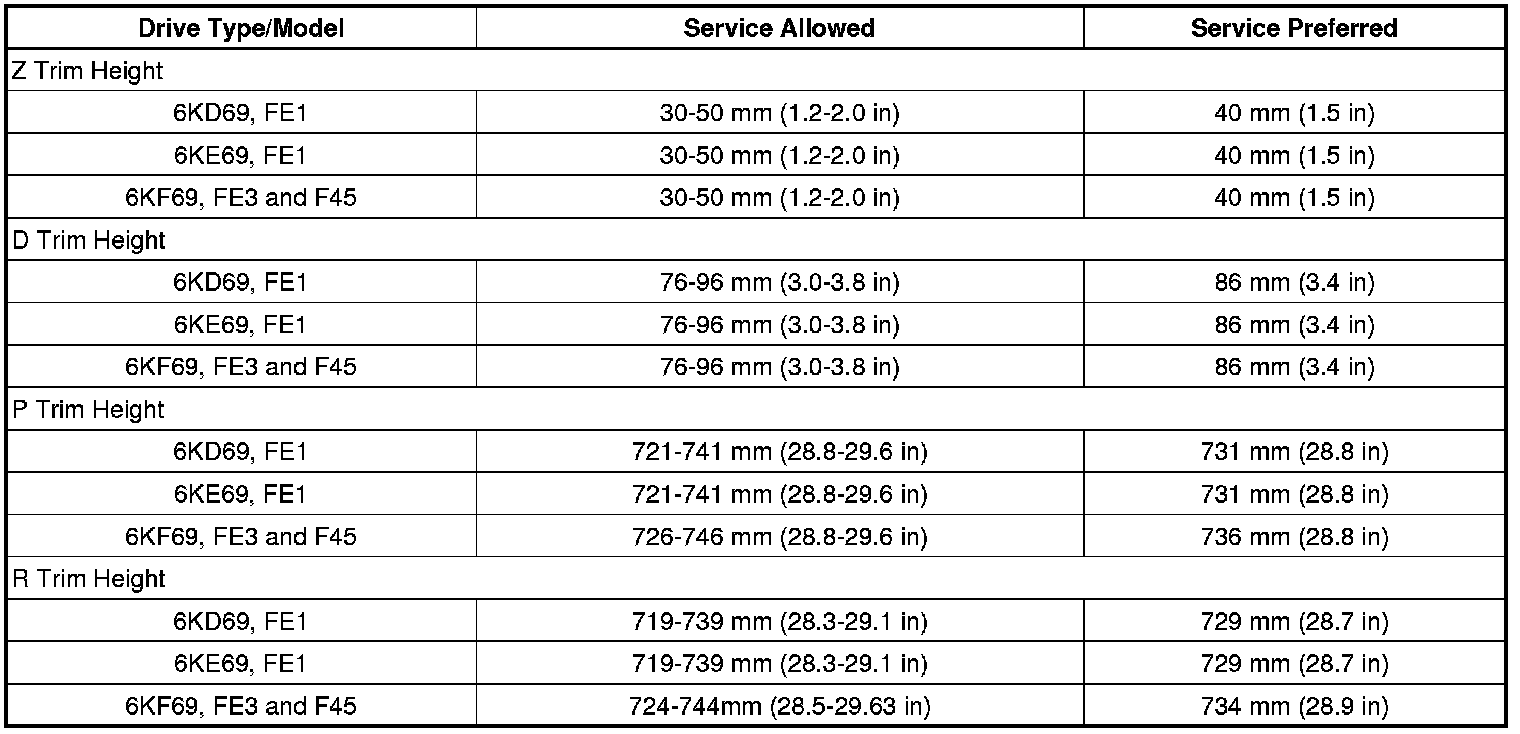 Trim Height Specifications