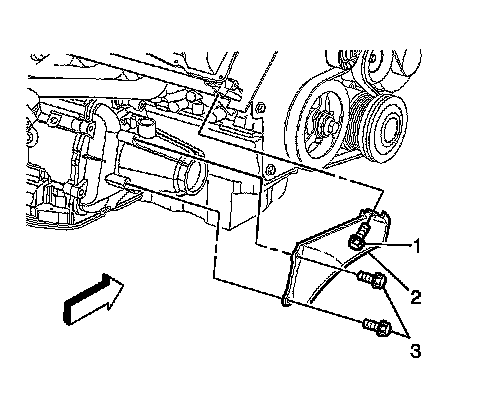 2. Remove the bolts (1, 3) securing the front transaxle brace (2) to the transaxle and right cylinder head.