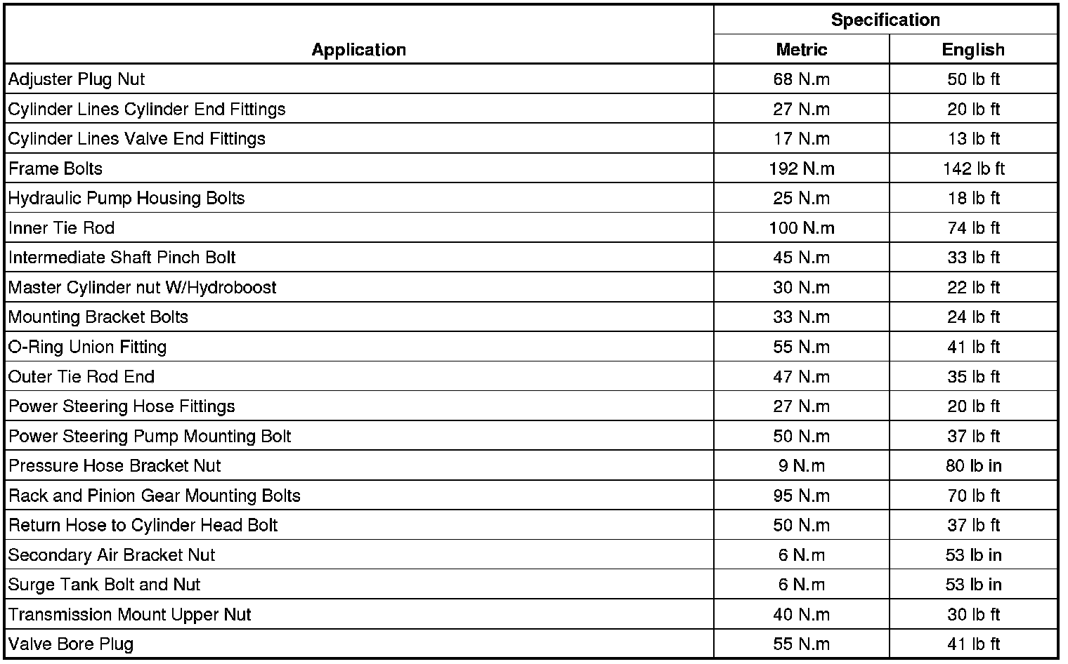 Fastener Tightening Specifications