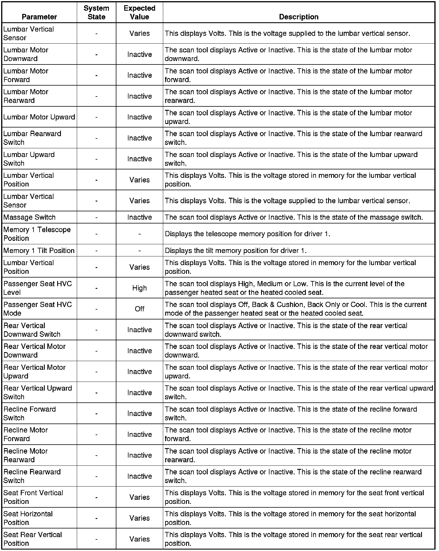 Driver Seat Adjuster Memory Module Scan Tool Information