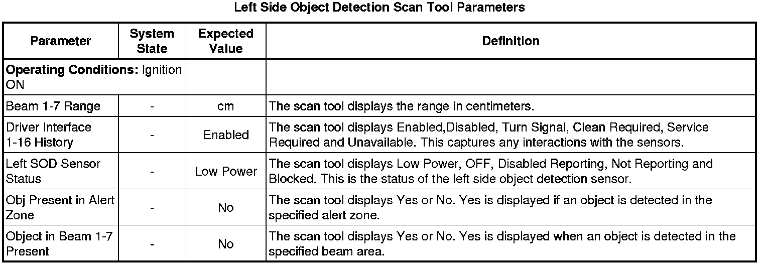 Side Object Sensor Module Scan Tool Information (Left Side)