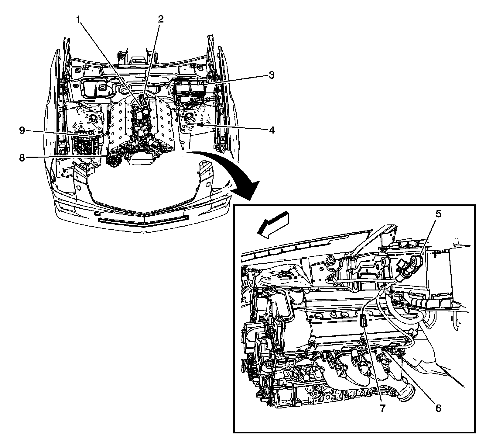 Front of Vehicle/Engine Compartment Component Views