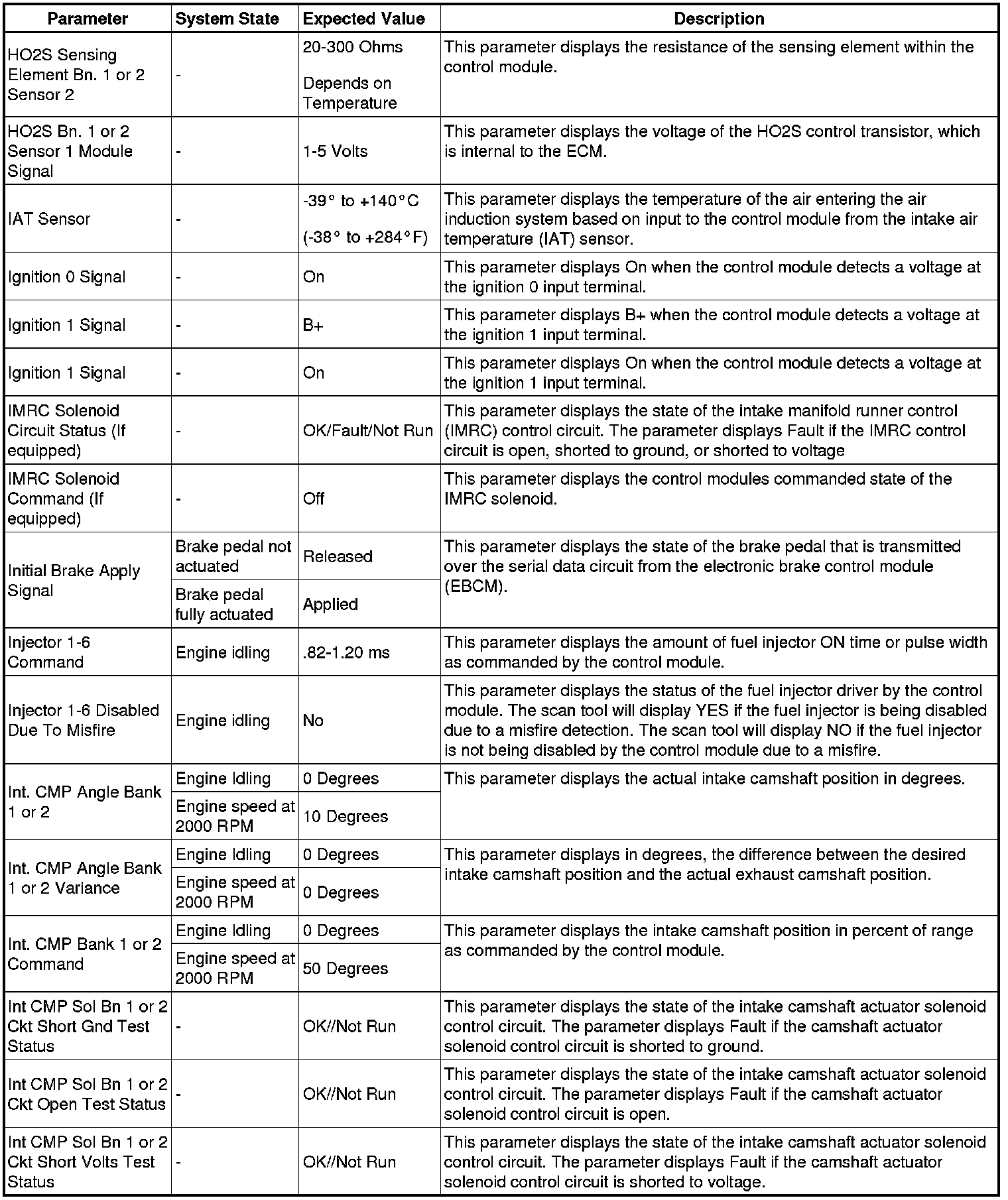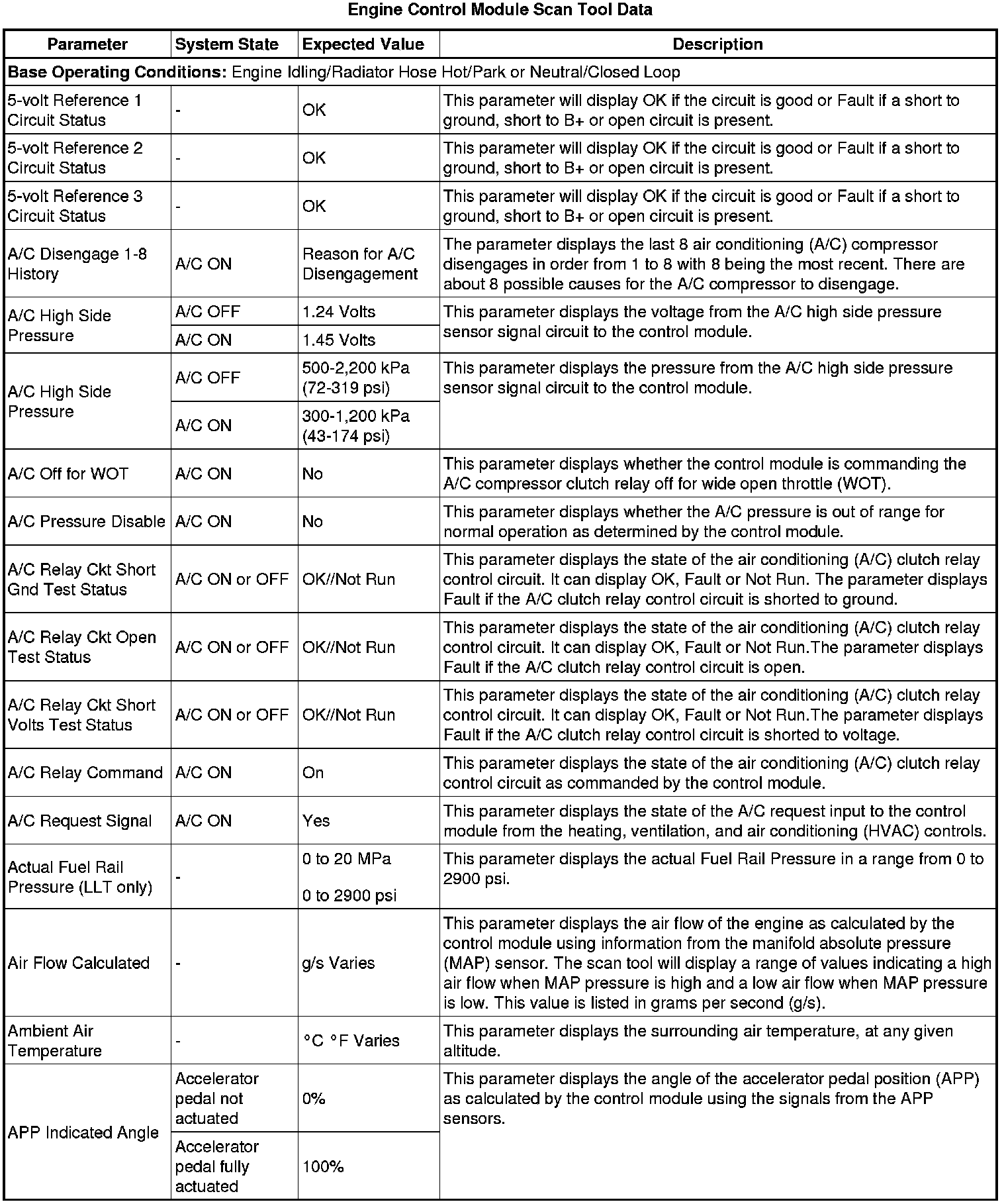 The Engine Control Module Scan Tool Data List contains all engine-related parameters that are available on the scan tool. The list is arranged in alphabetical order. A given parameter may appear in any one of the data lists, and in some cases may appear more than once, or in more than one data list in order to group certain related parameters together.