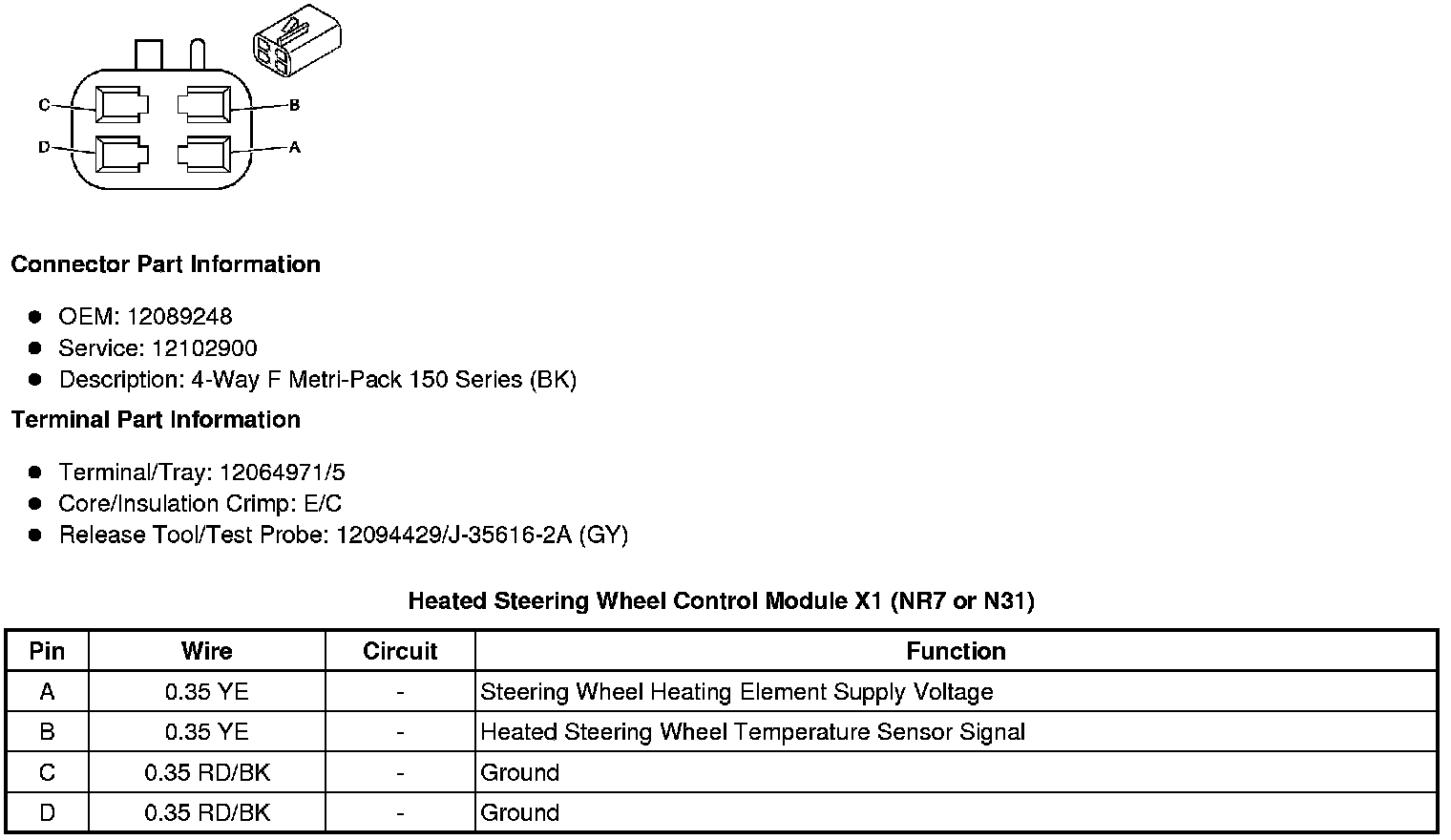 Heated Steering Wheel Control Module X1 (NR7 or N31)
