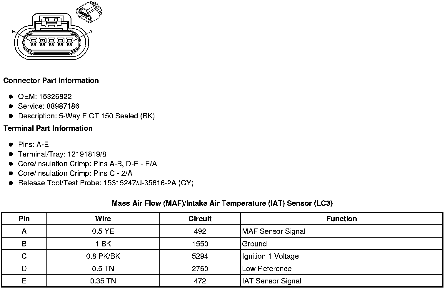 Mass Air Flow (MAF)/Intake Air Temperature (IAT) Sensor (LC3 - 8 Cyl, 4.4L, MFI, V8, SC, ALUM, DOHC)