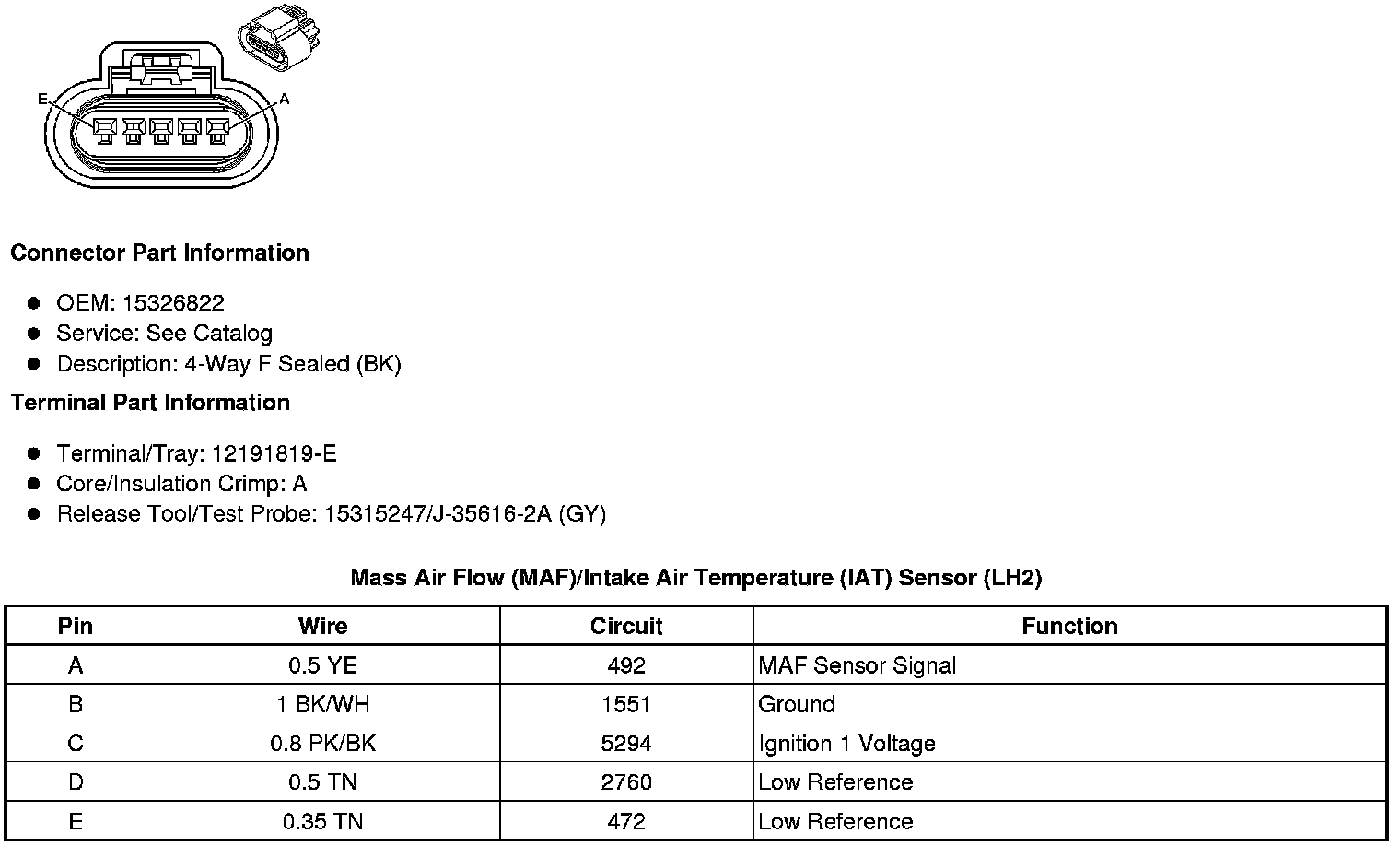 Mass Air Flow (MAF)/Intake Air Temperature (IAT) Sensor (LH2 - Gas, 8 Cyl, 4.6L, SFI, V8, DOHC, HO, Alum)