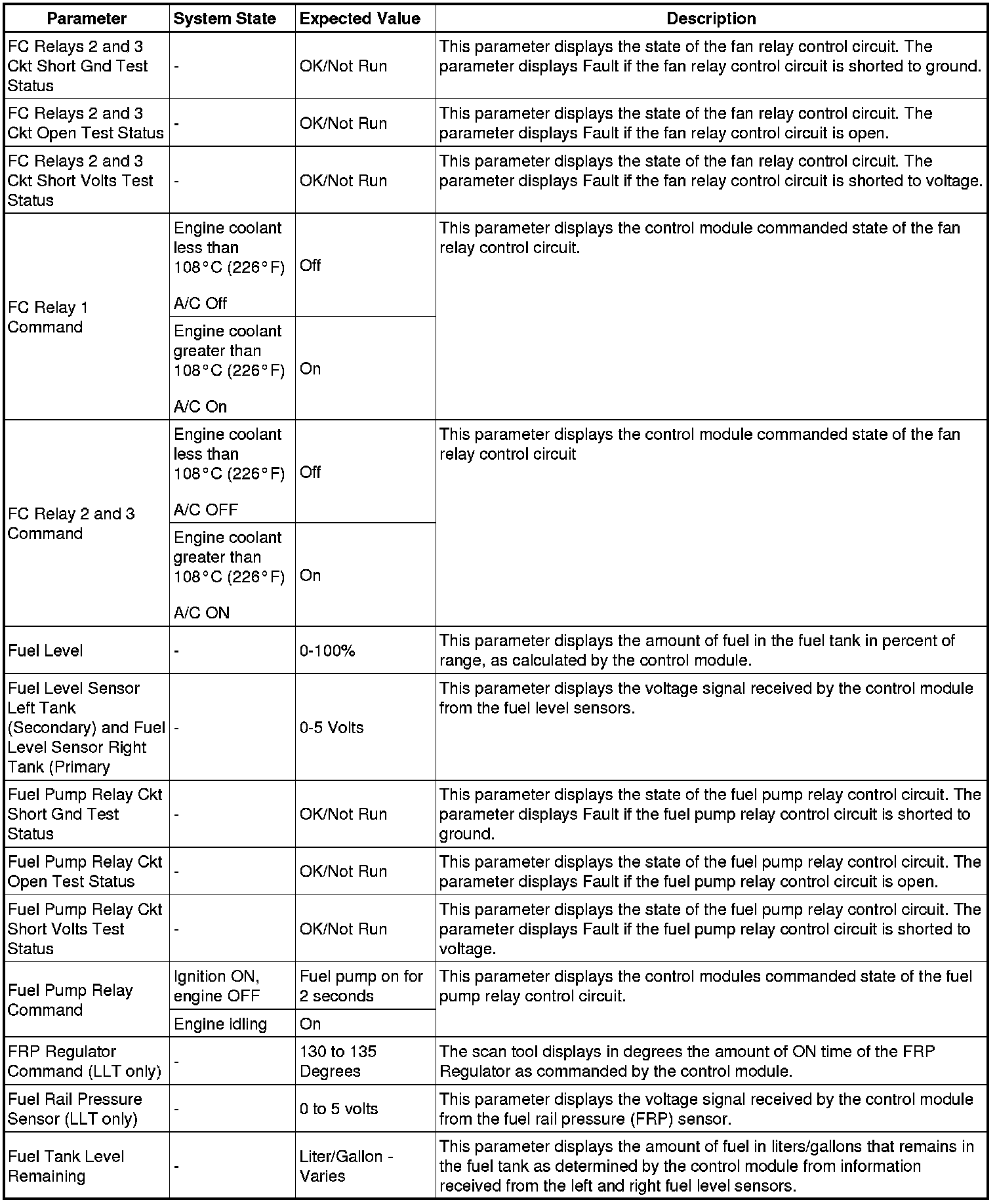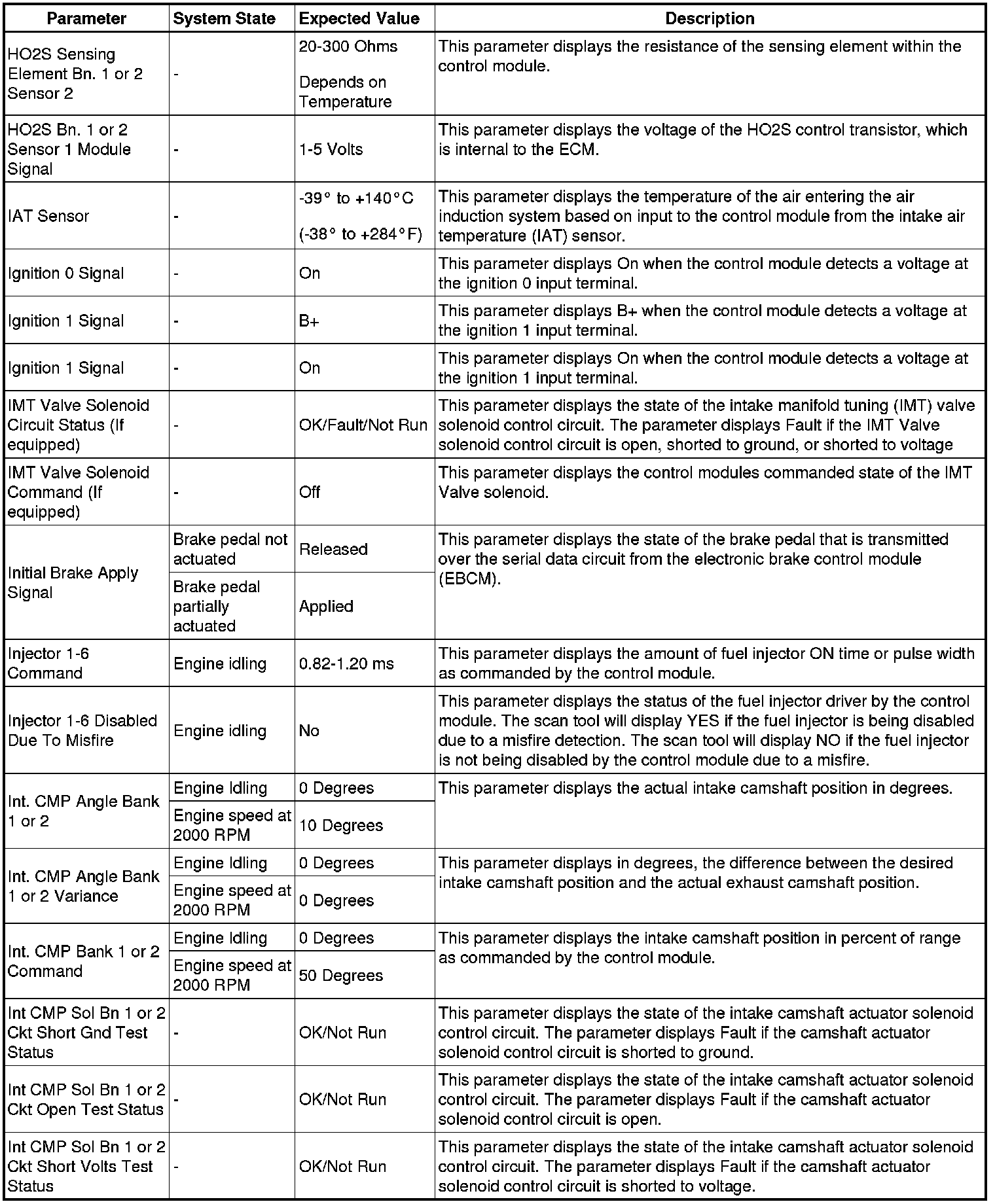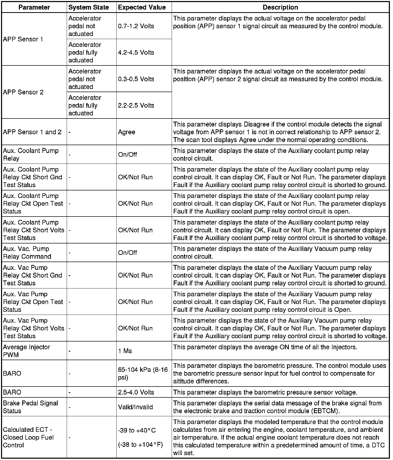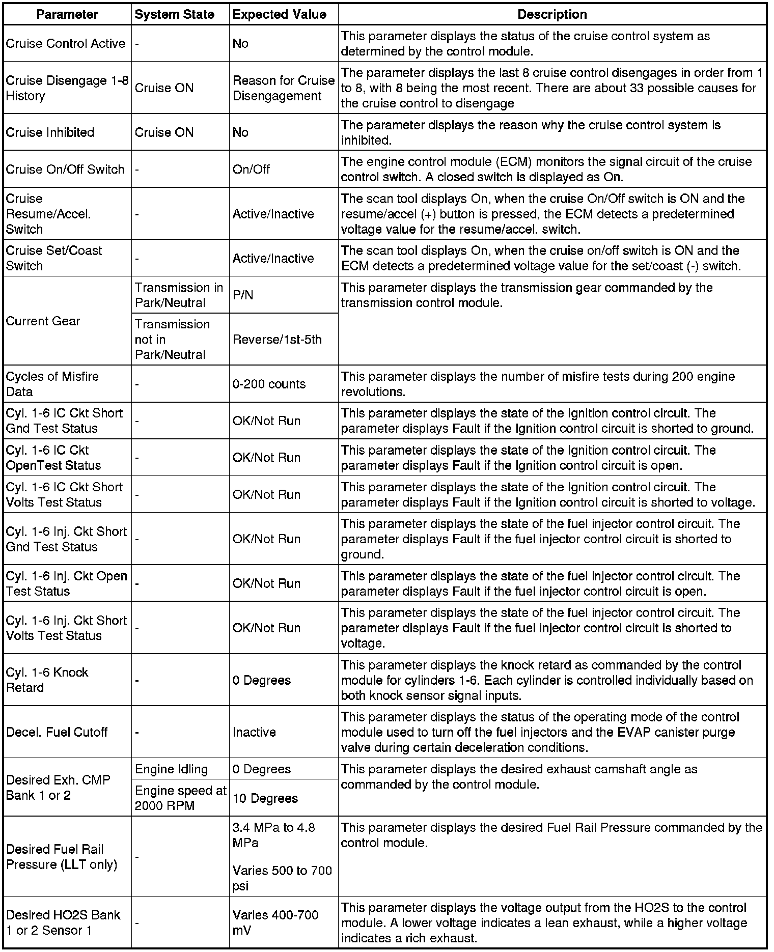 The Engine Control Module Scan Tool Data List contains all engine-related parameters that are available on the scan tool. The list is arranged in alphabetical order. A given parameter may appear in any one of the data lists, and in some cases may appear more than once, or in more than one data list in order to group certain related parameters together.
