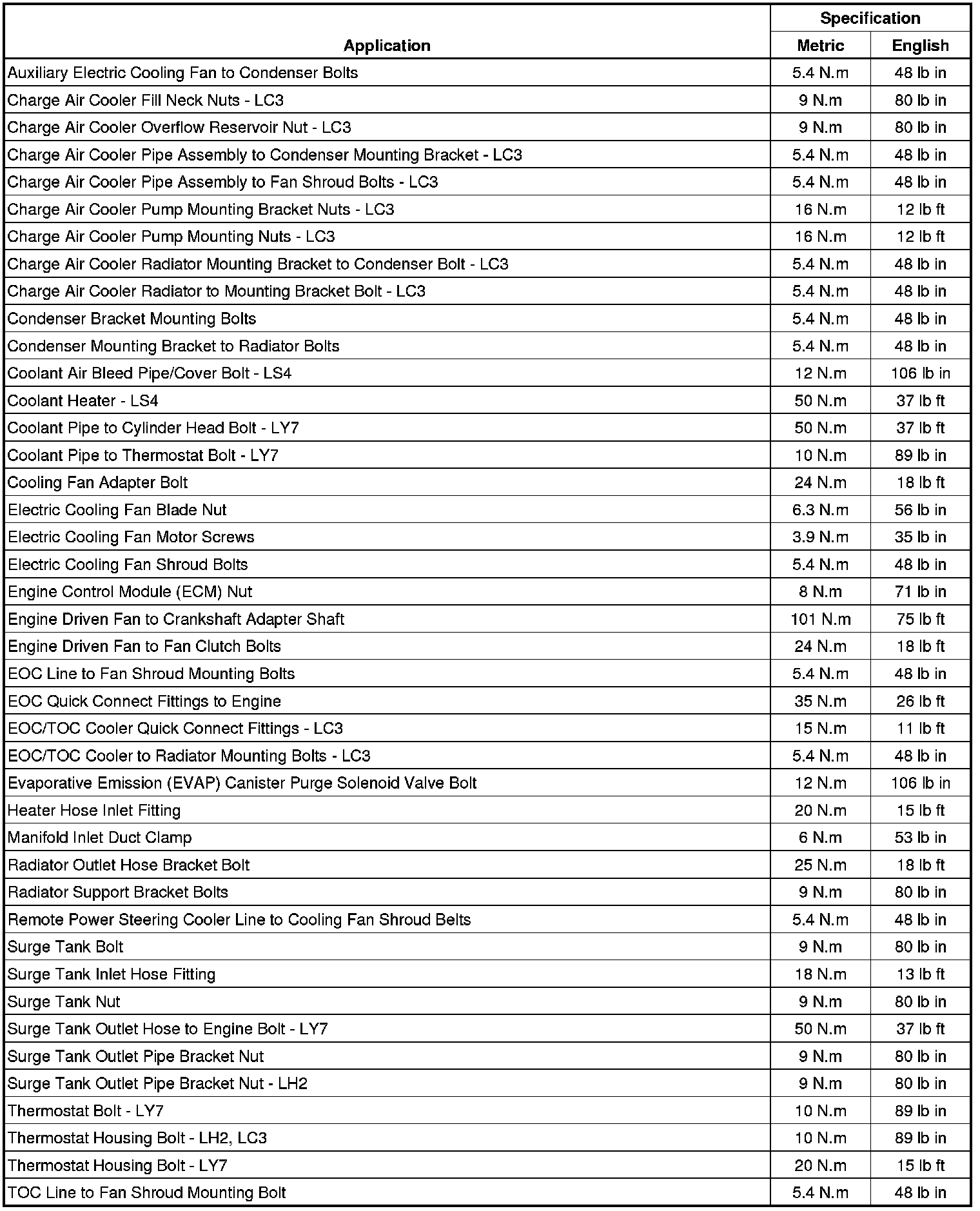 Fastener Tightening Specifications