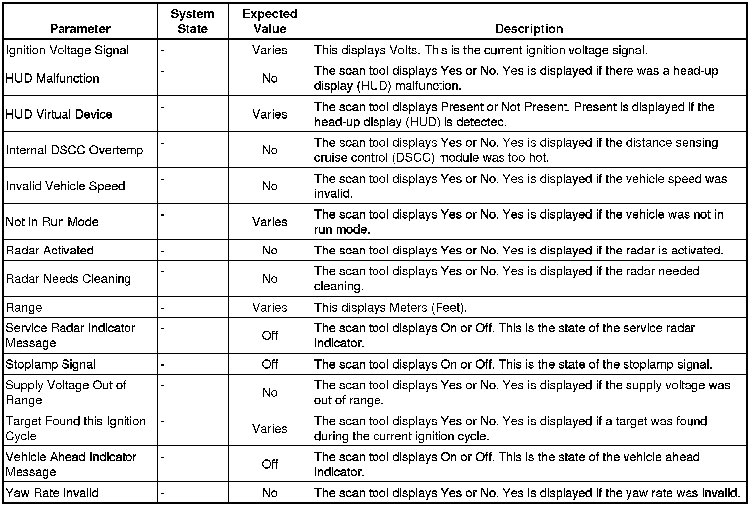 Cruise Control Module with Distance Sensing Scan Tool Information