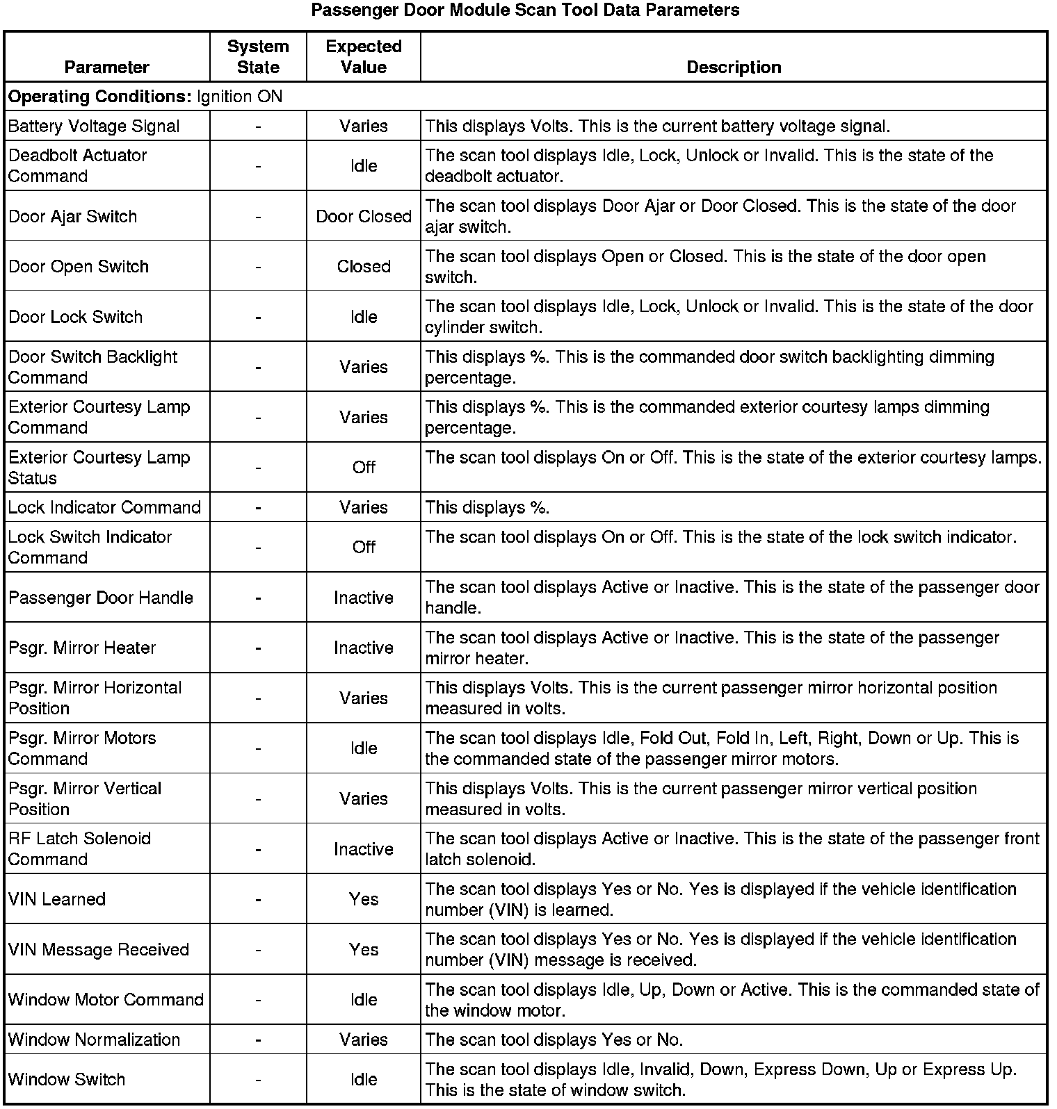 Door Lock Control Module Scan Tool Information (Passenger Door Module)