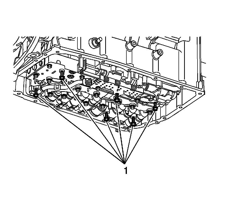 1. Remove the transmission oil pan and filter. Refer to Automatic Transmission Fluid, Fluid Pan and/or Filter Replacement (Removal and Replacement) .