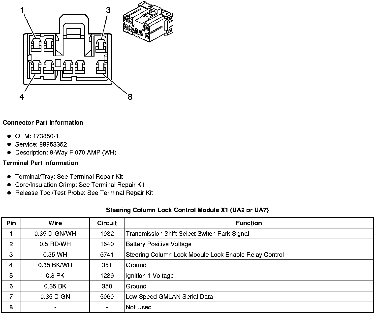 Steering Column Lock Control Module X1 (UA2 or UA7)