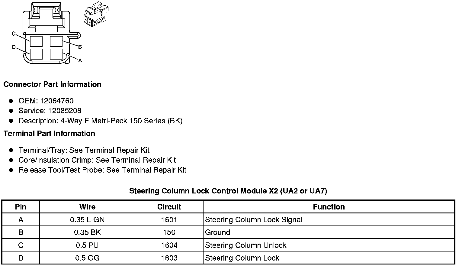 Steering Column Lock Control Module X2 (UA2 or UA7)