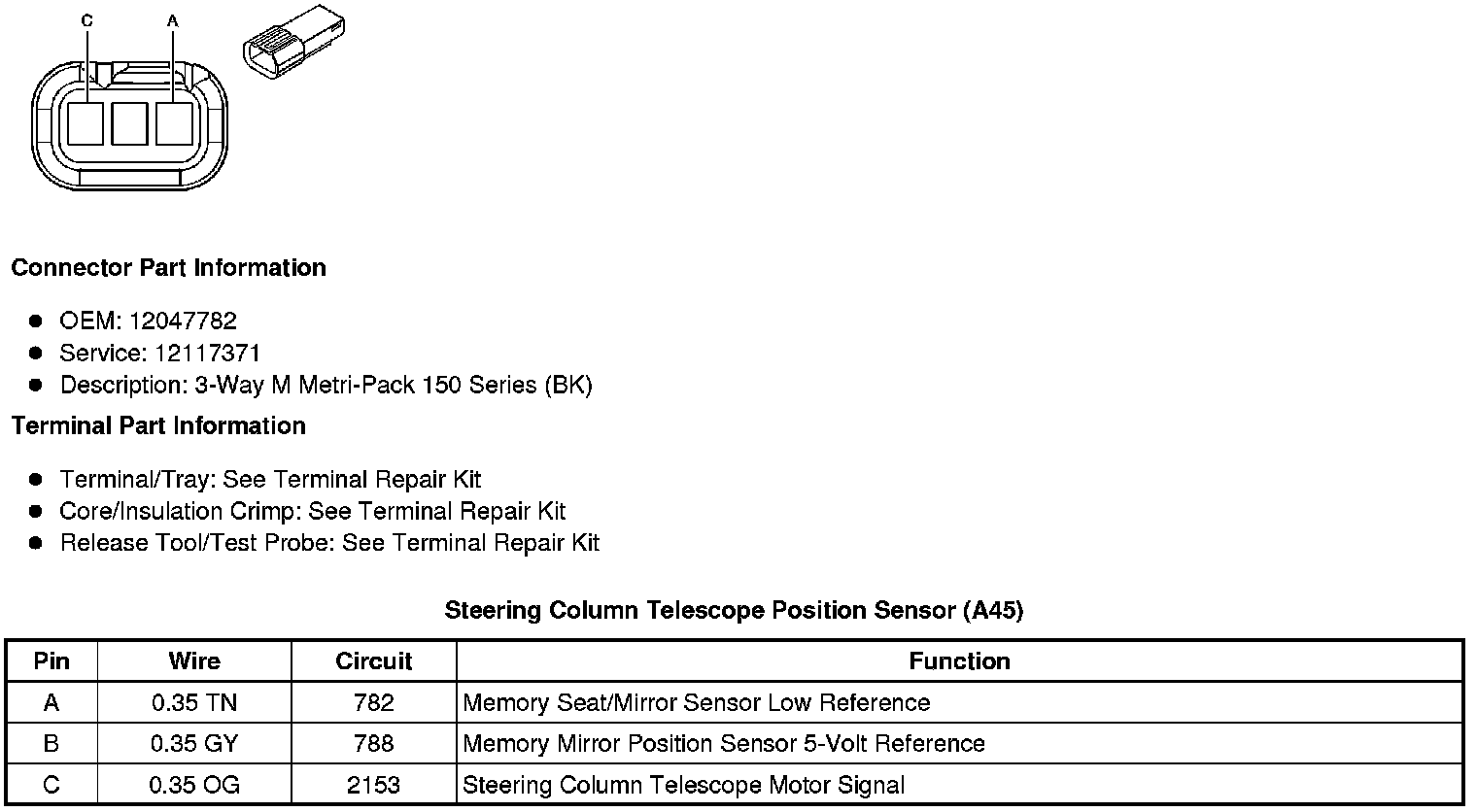 Steering Column Telescope Position Sensor (A45)