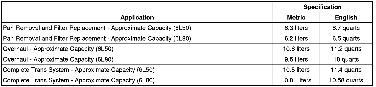 Fluid Capacity Specifications