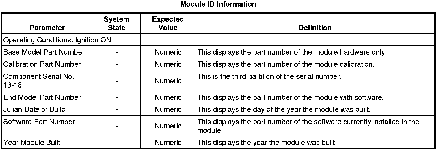 Headlamp Control Module Scan Tool Information (Module ID Information)