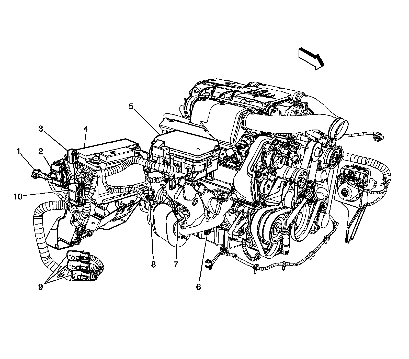 Right Side of Engine (LC3 - 8 Cyl, 4.4L, SC, DOHC)
