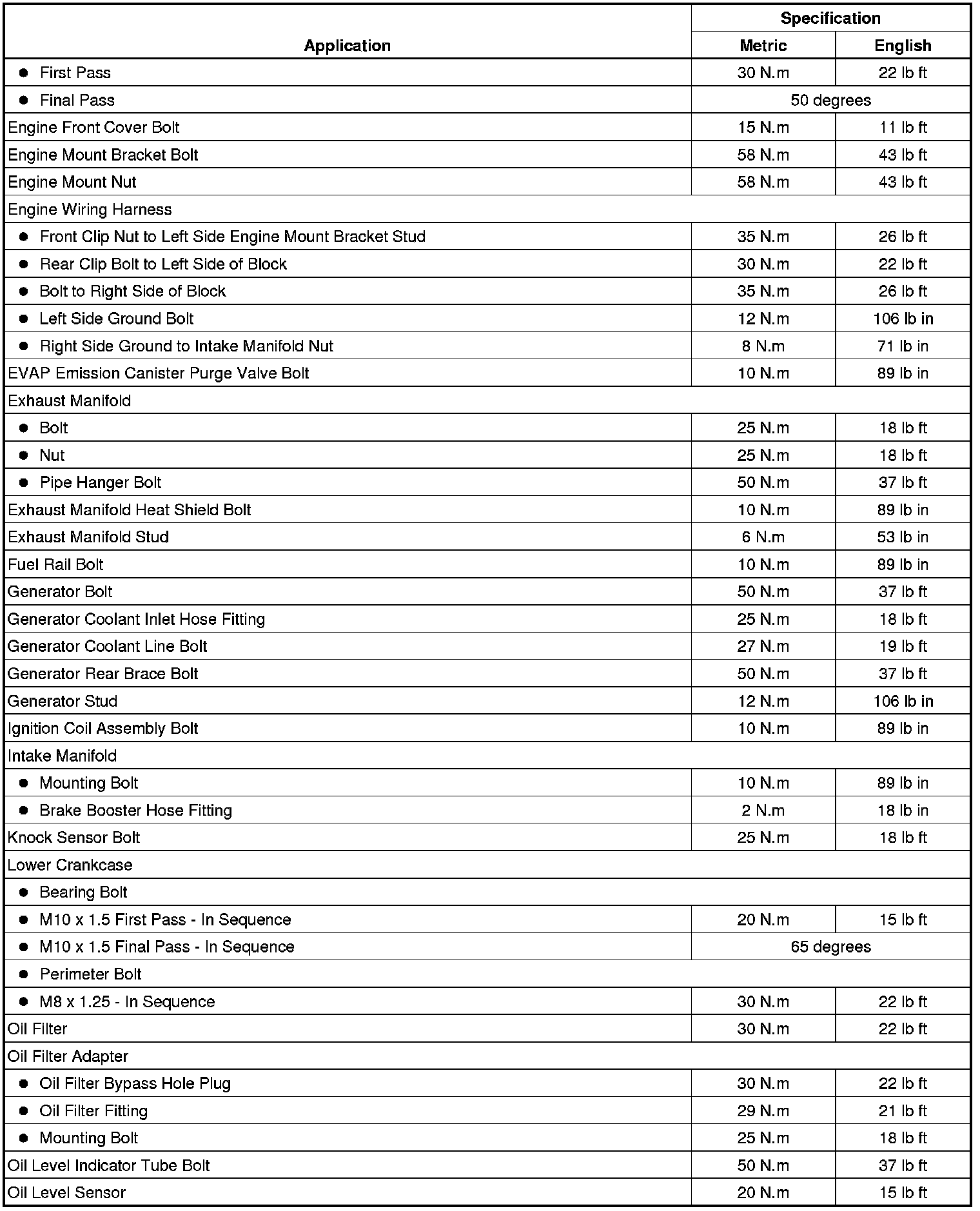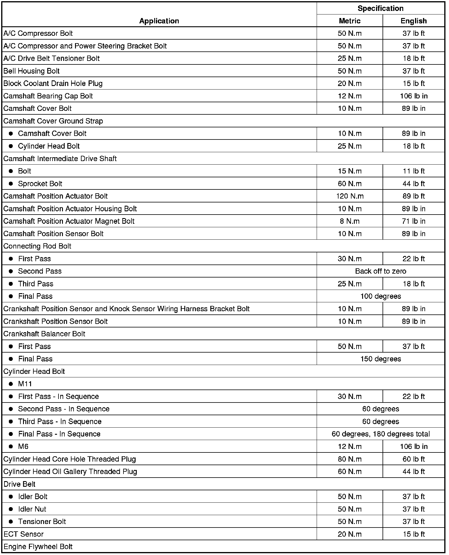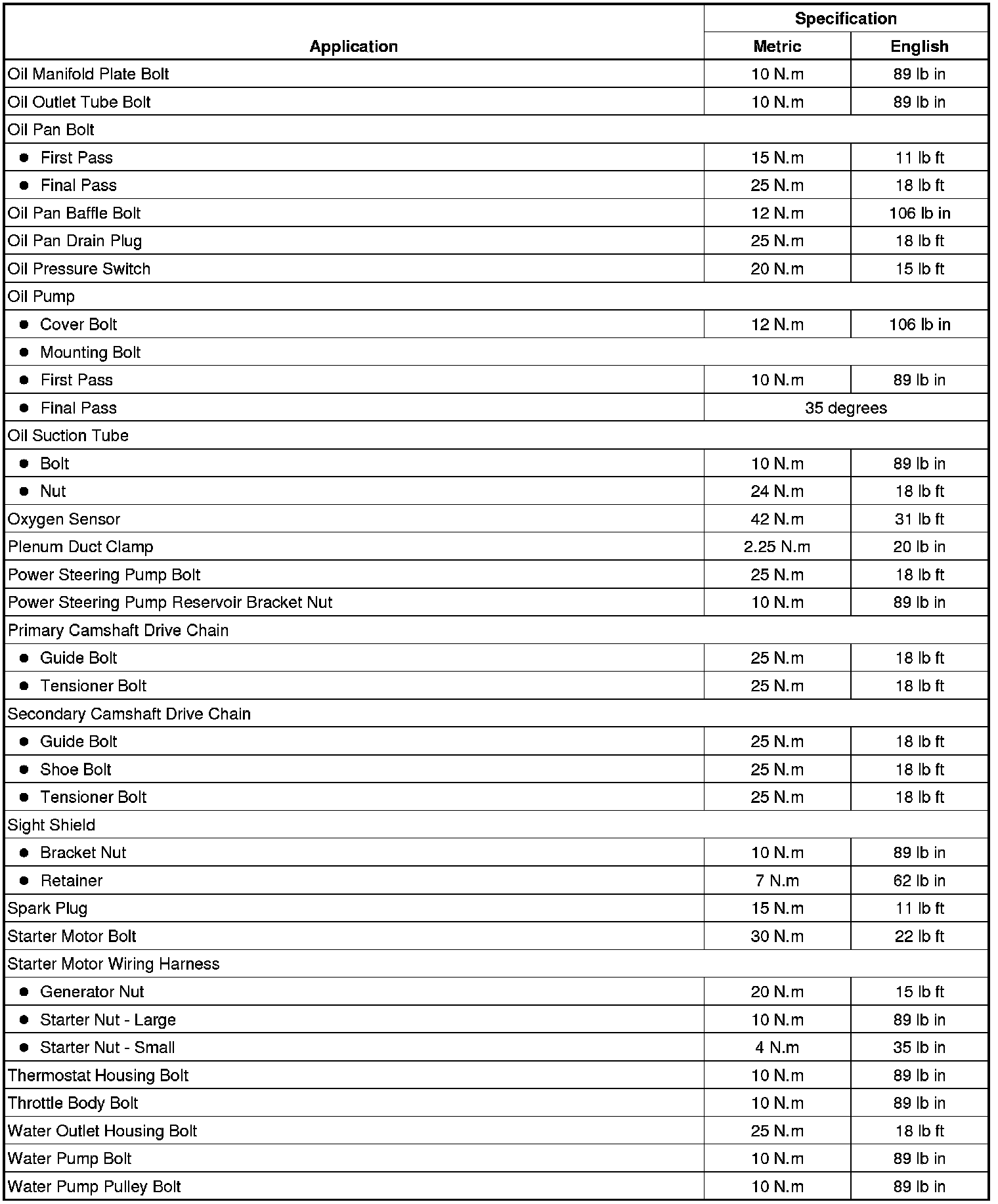 Fastener Tightening Specifications