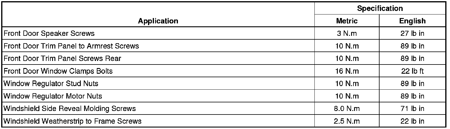 Fastener Tightening Specifications