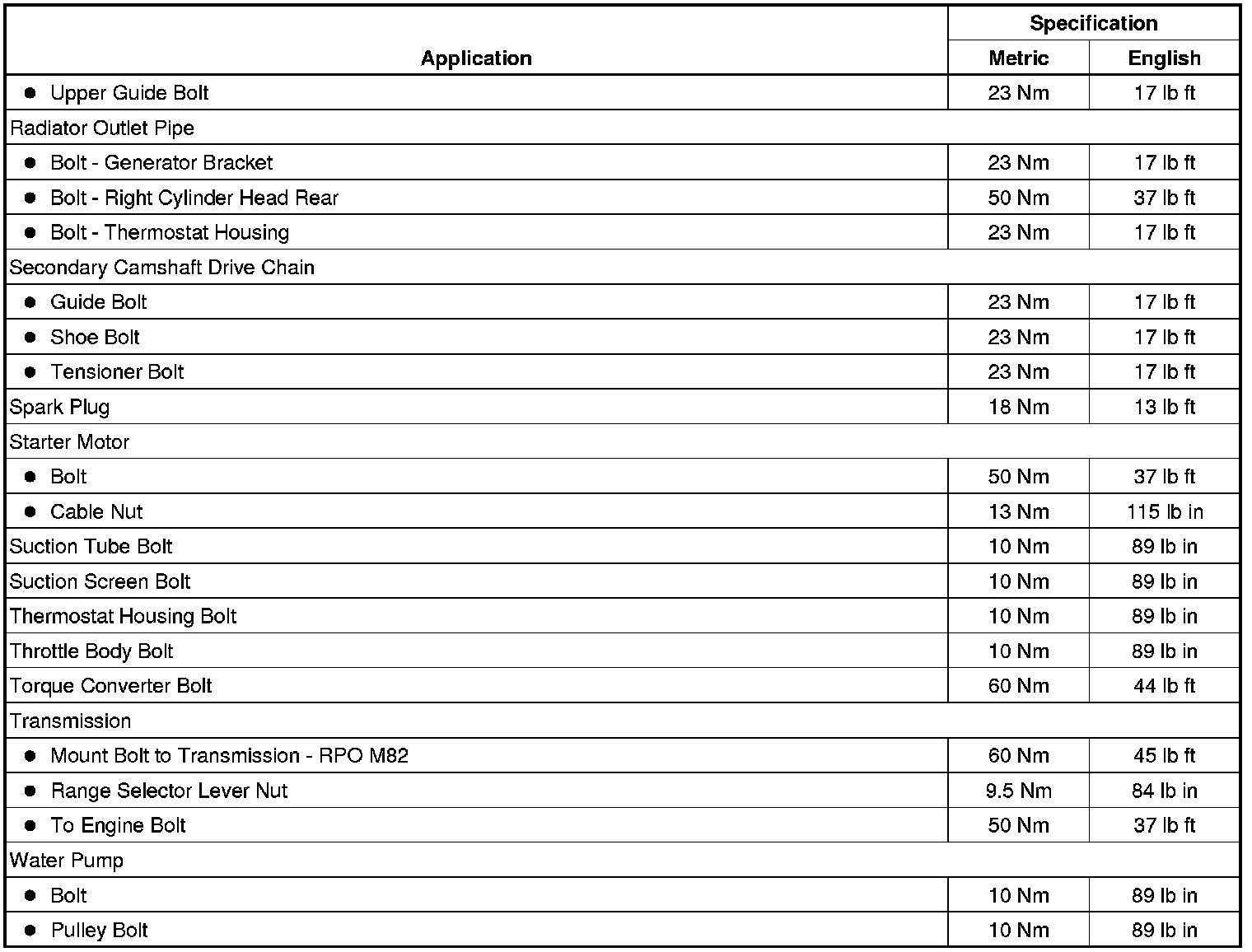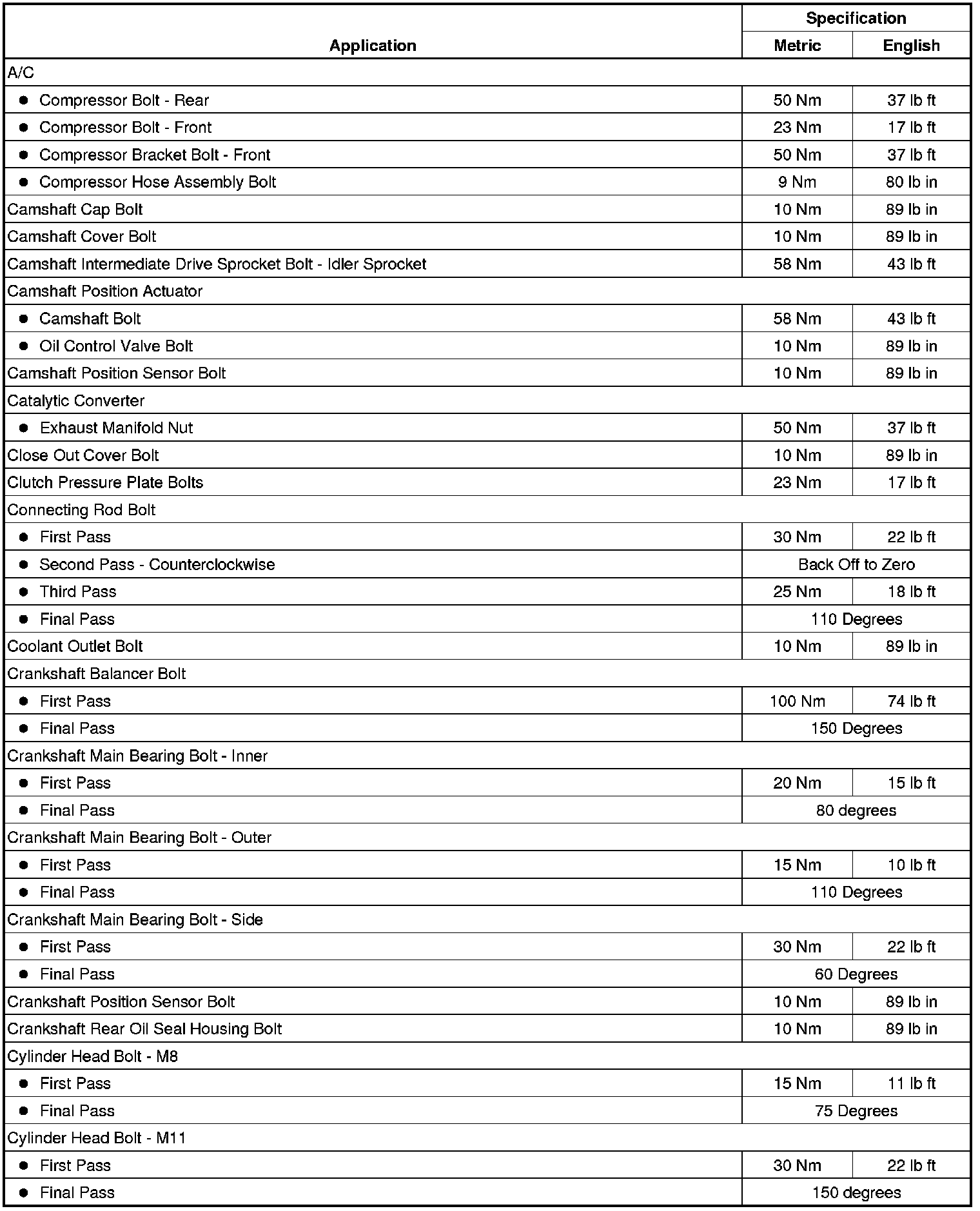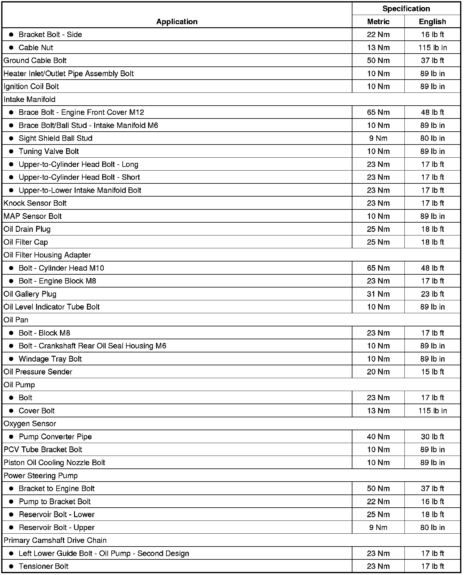 Fastener Tightening Specifications
