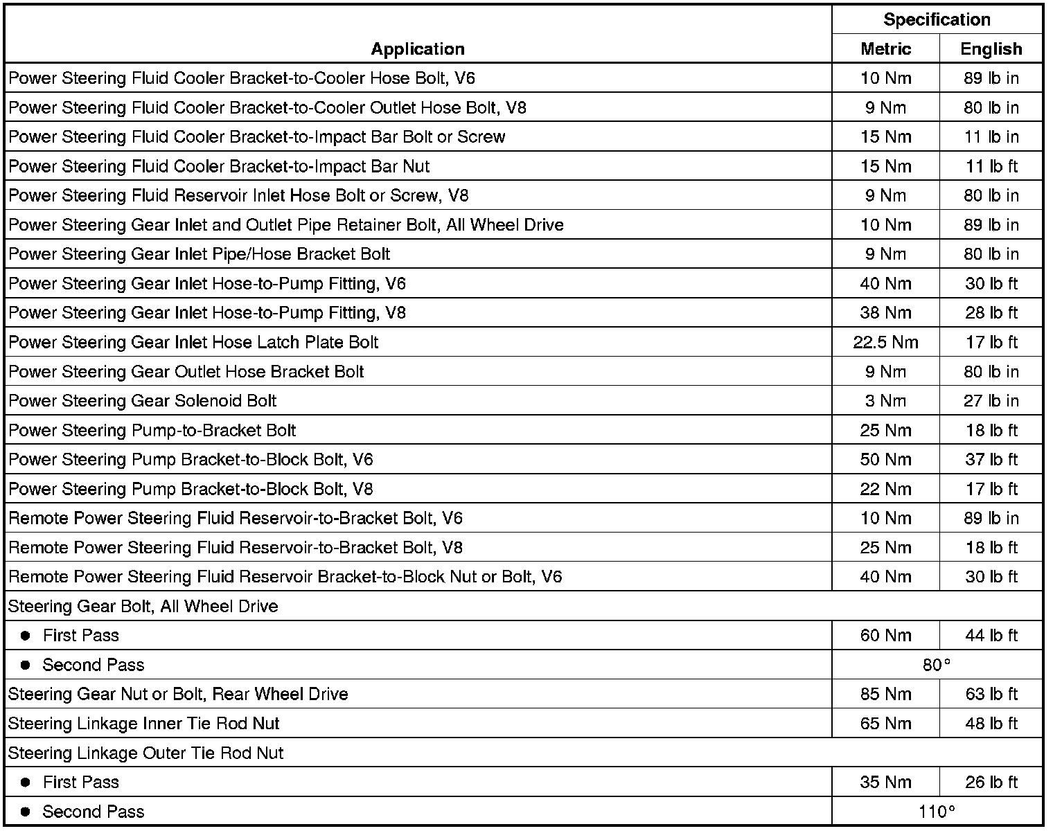 Fastener Tightening Specifications