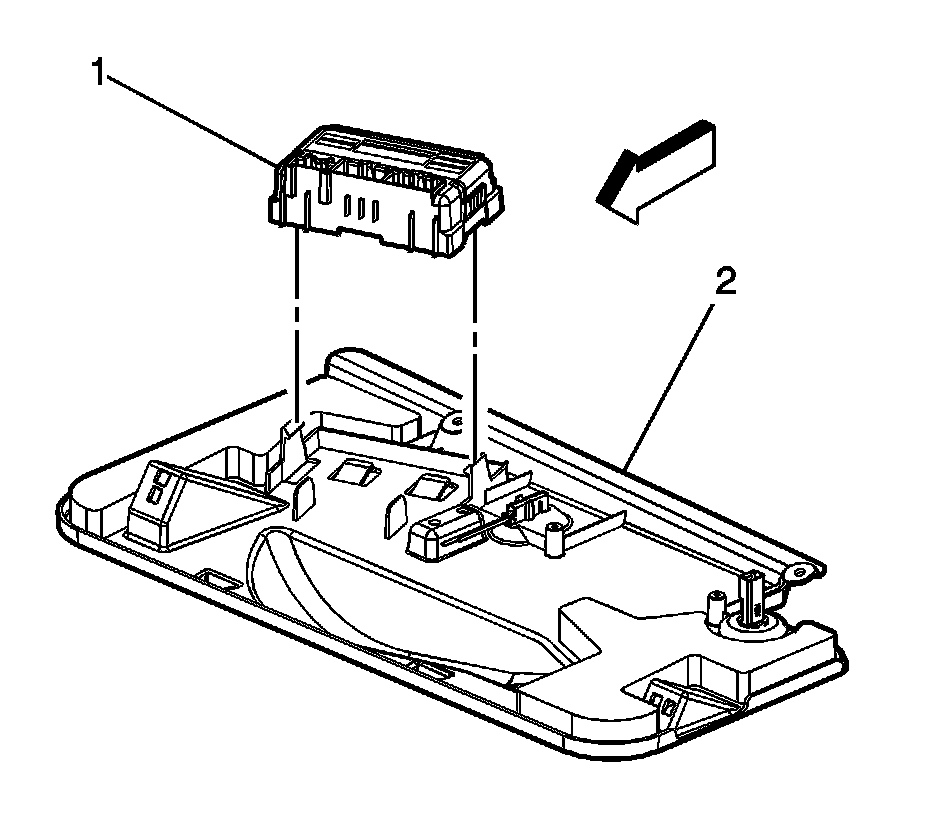 1. Install the transfer case shift control module (1) to the instrument panel insulator (2).