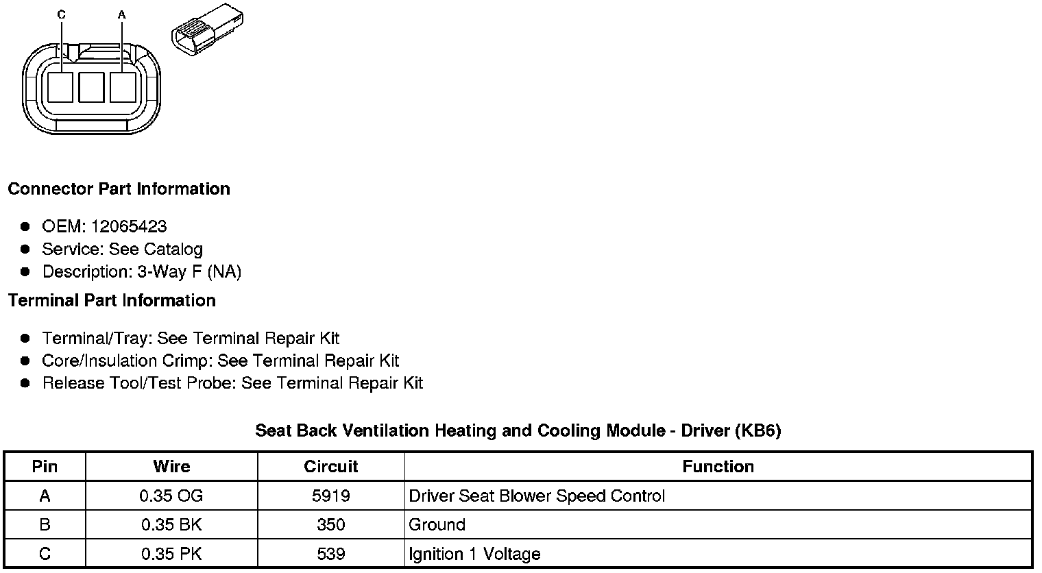 Seat Back Ventilation Heating and Cooling Module - Driver (KB6)