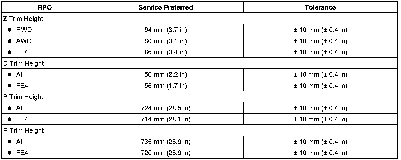 Trim Height Specifications