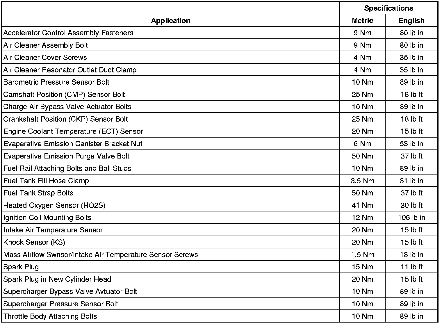 Fastener Tightening Specifications
