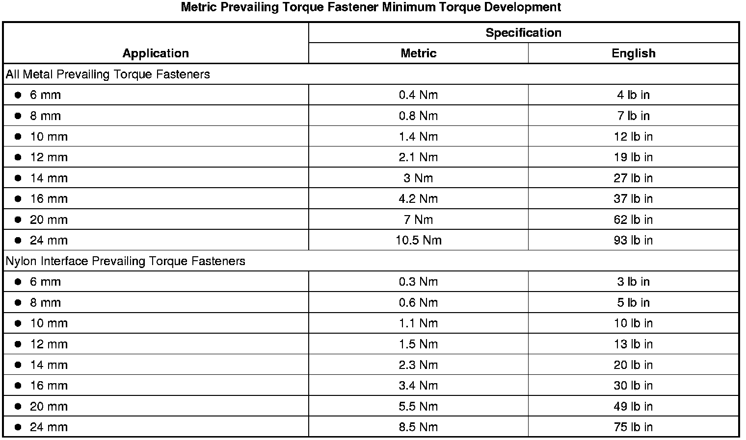 This vehicle provides fastener dimensions using the metric system. Most metric fasteners are approximate in diameter to equivalent English fasteners. Make replacements using fasteners of the same nominal diameter, thread pitch, and strength.