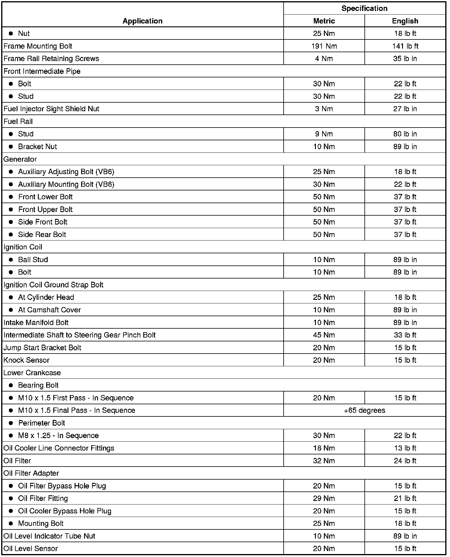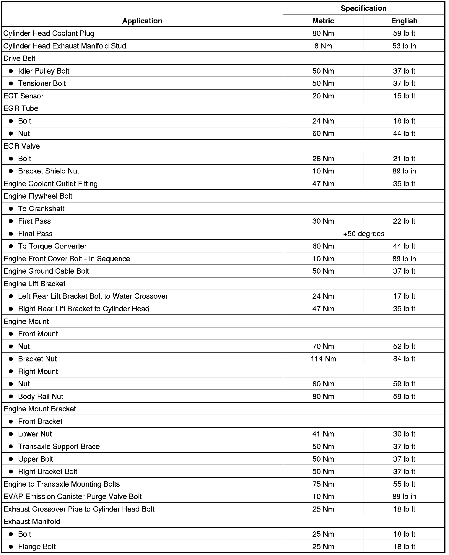 Fastener Tightening Specifications