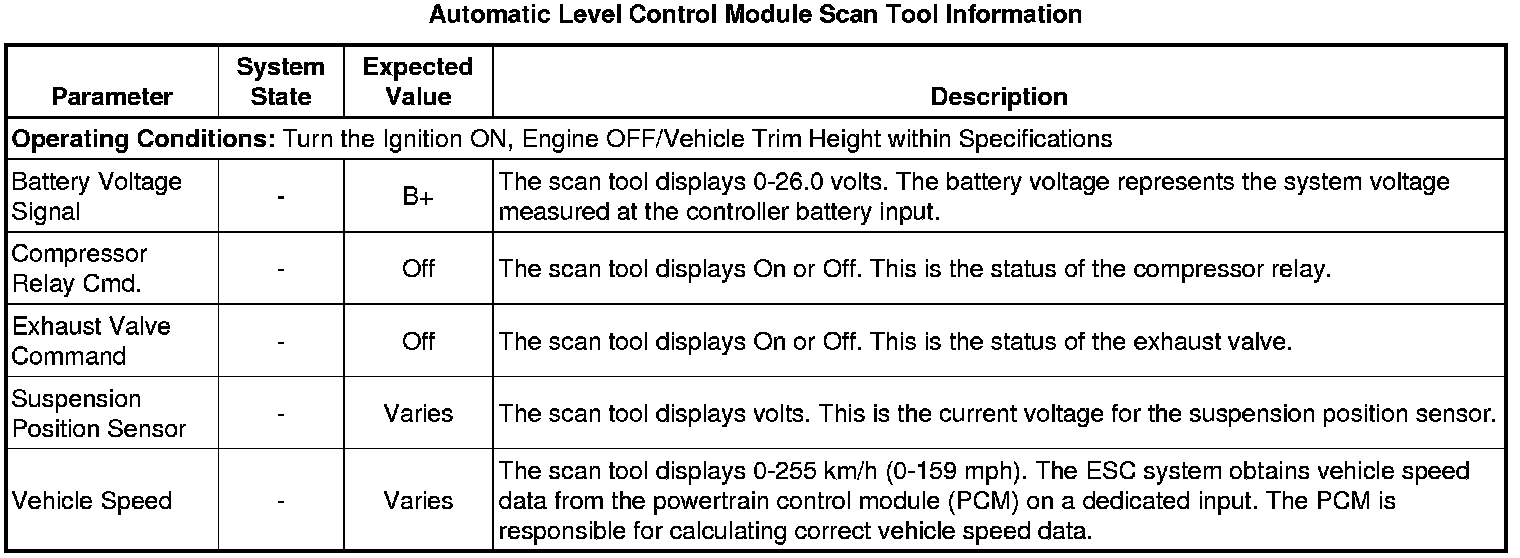 Automatic Level Control Sensor Scan Tool Information