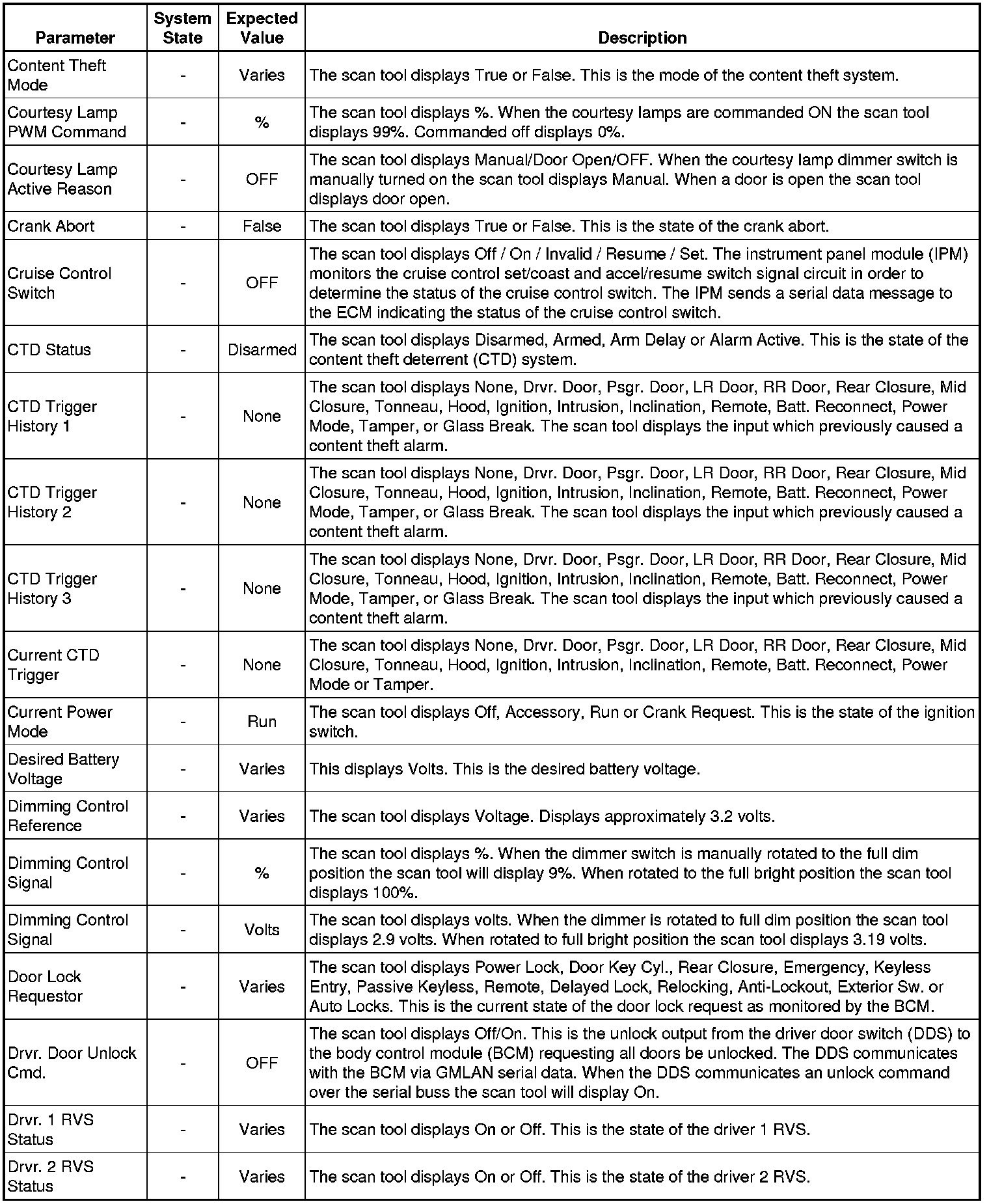 Body Control Module Scan Tool Information