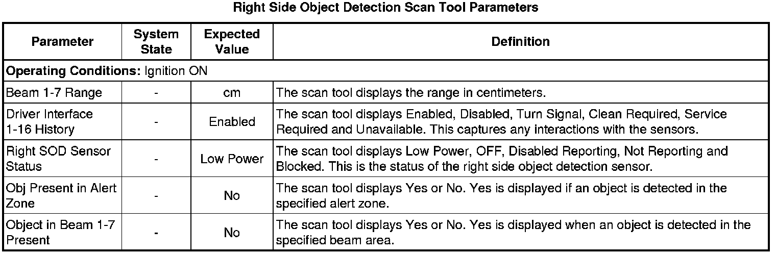 Side Object Sensor Module Scan Tool Information (Right)