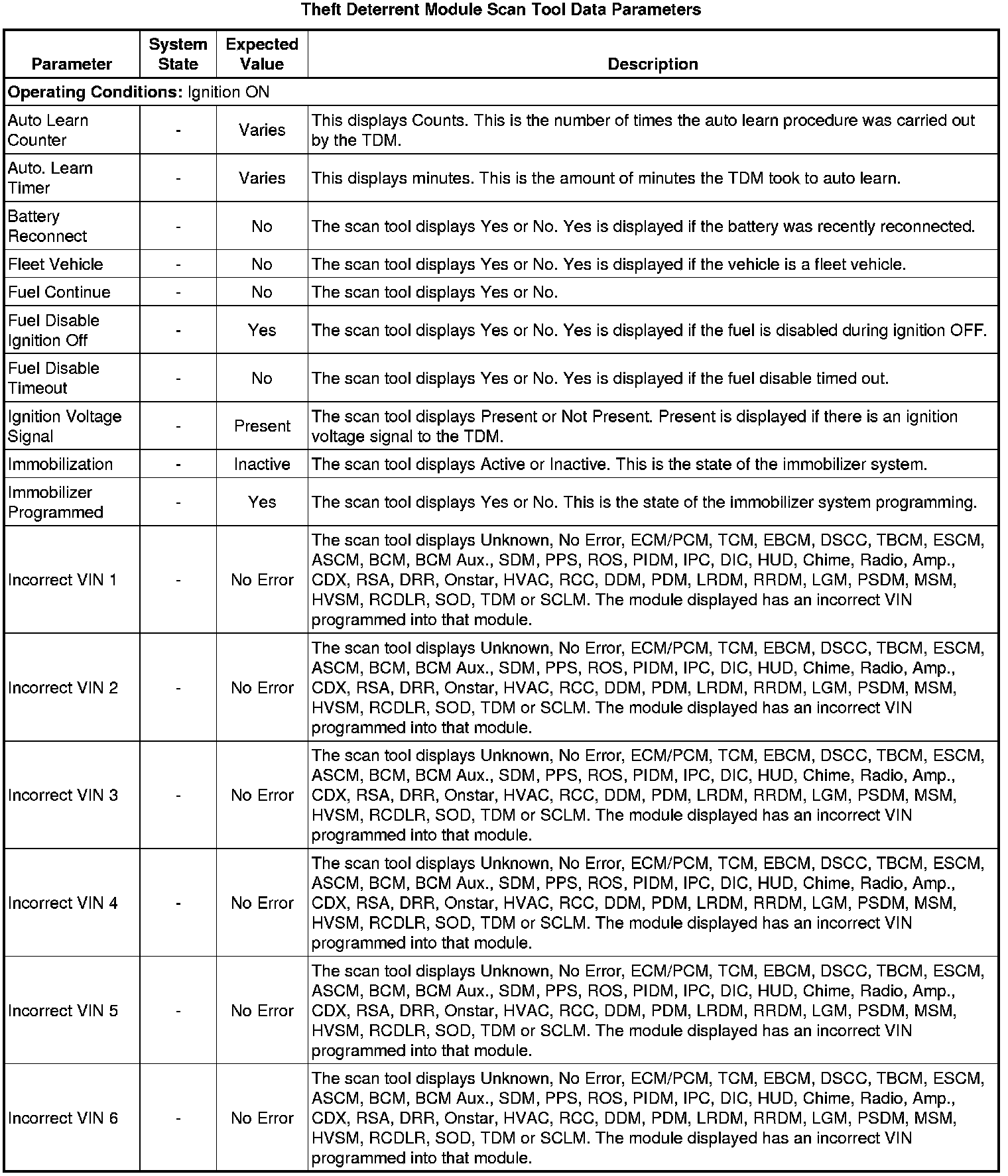 Theft Deterrent Module Scan Tool Information