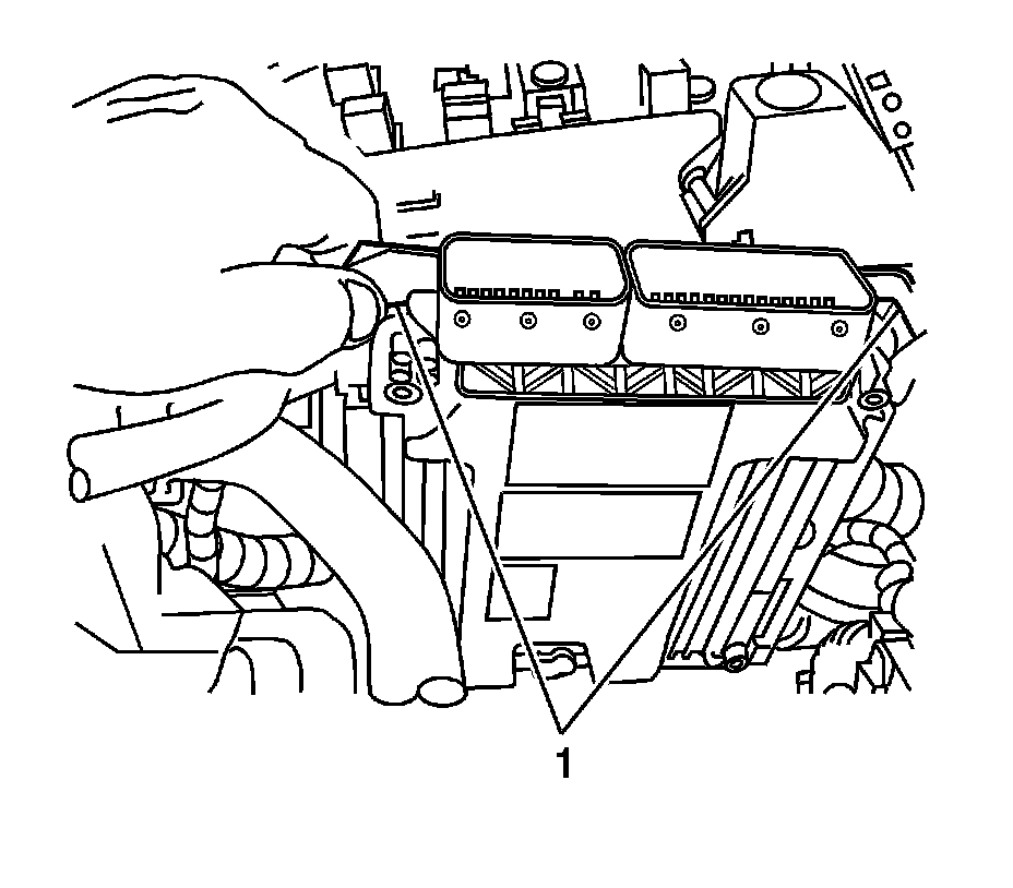 10. Release the locking tabs (1) and remove the ECM from the ECM bracket.