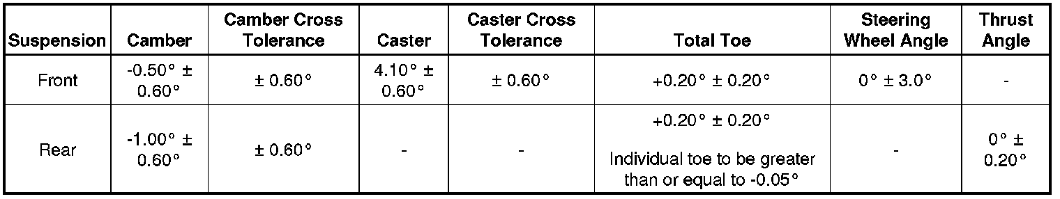 Wheel Alignment Specifications