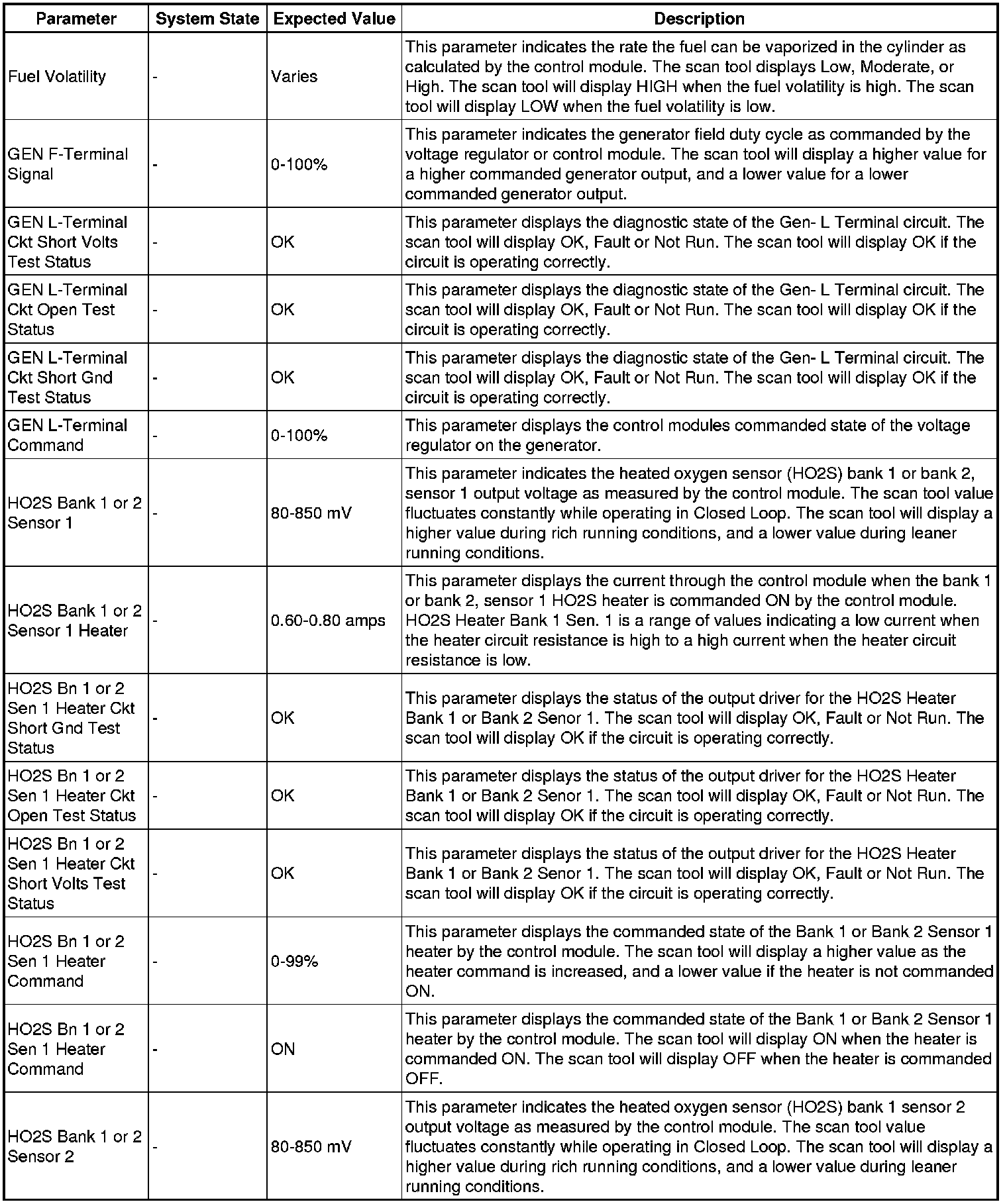 The scan tool values from a properly running engine may be used for comparison with the engine you are diagnosing. The engine scan tool data list represents values that would be seen on a normally running engine.