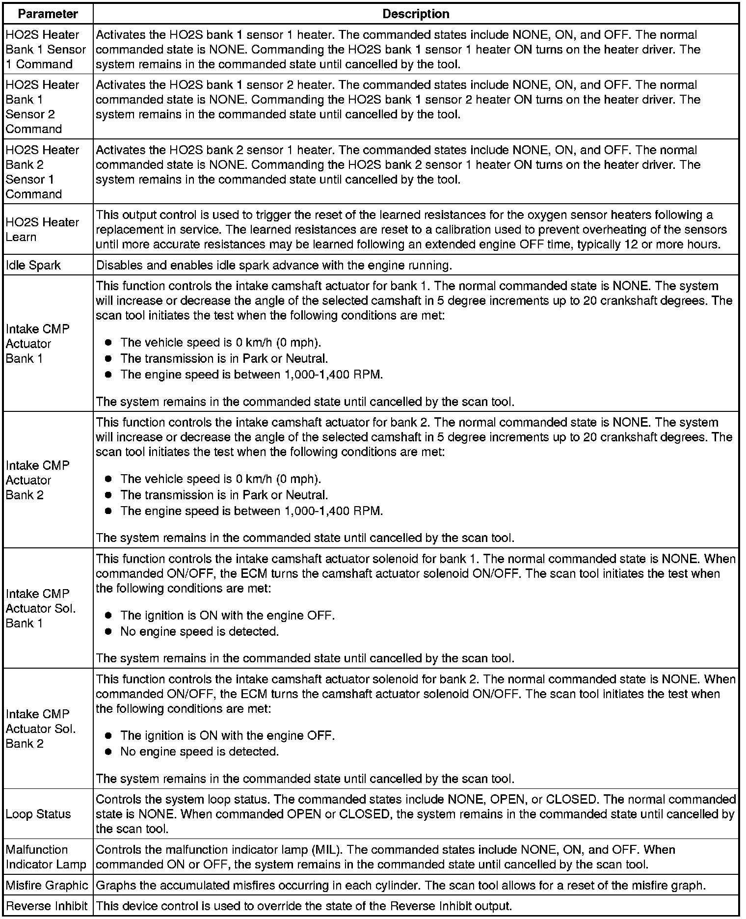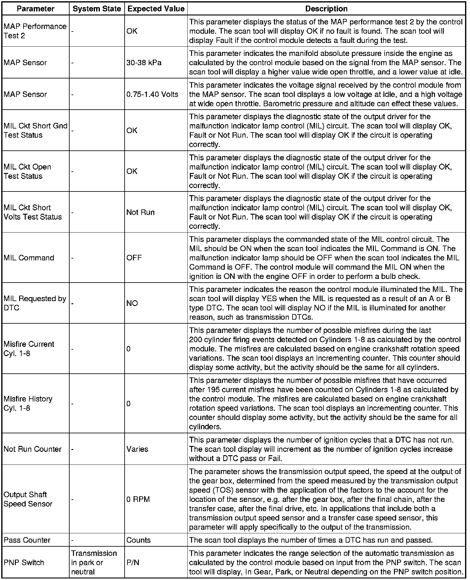 Only the parameters listed below are referenced in this service manual for use in diagnosis.