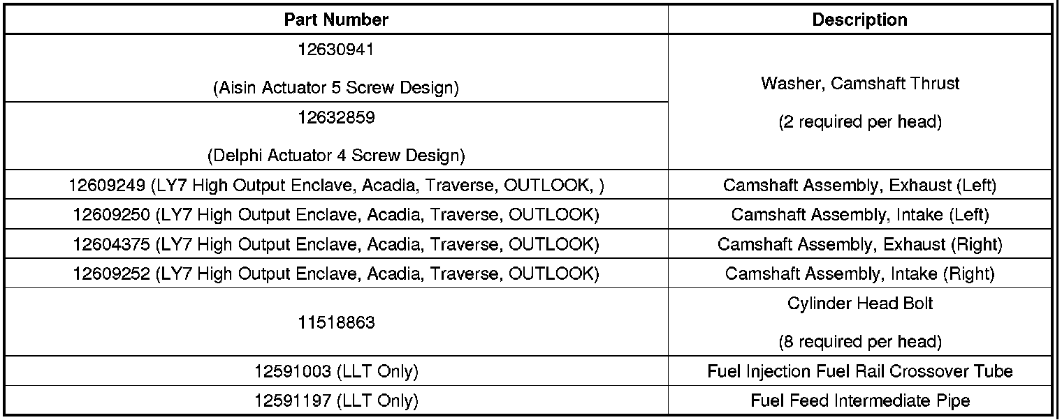 Warranty Information (Cylinder Head Replacement) (Buick Enclave, Chevrolet Traverse, GMC Acadia, Saturn OUTLOOK)