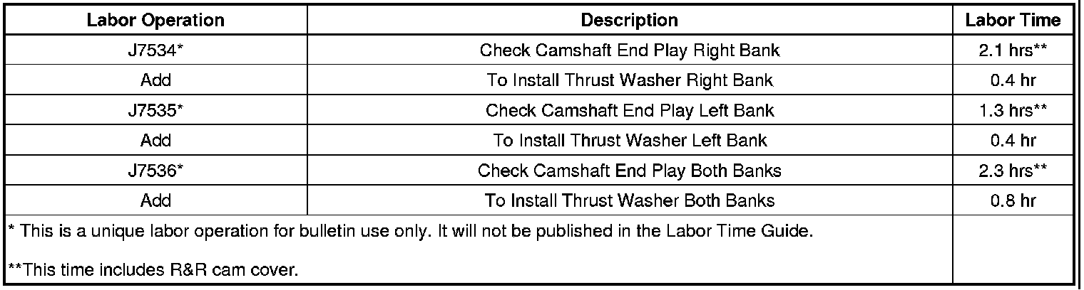 Warranty Information (Thrust Washer Installation) (Chevrolet Camaro)