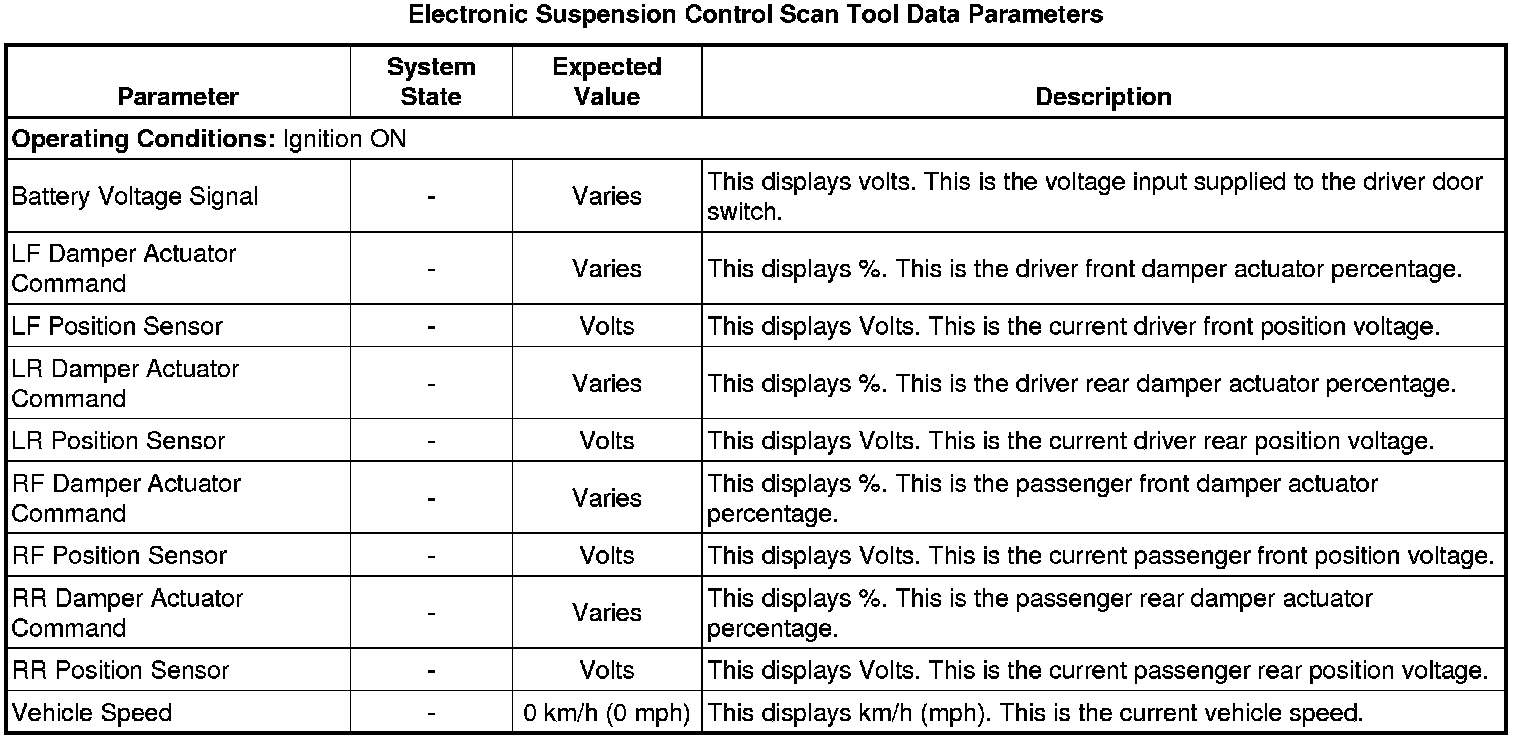 Electronic Suspension Control Module Scan Tool Information