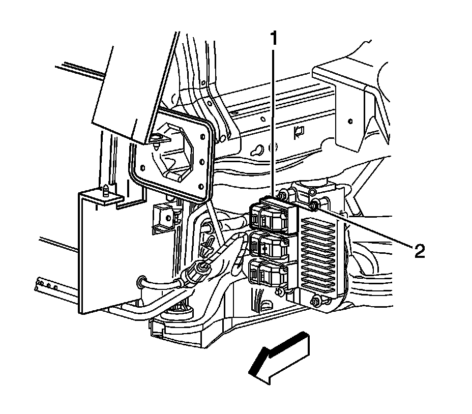2. Install the ECM mounting nuts (2) and tighten to 8 Nm (71 lb in).