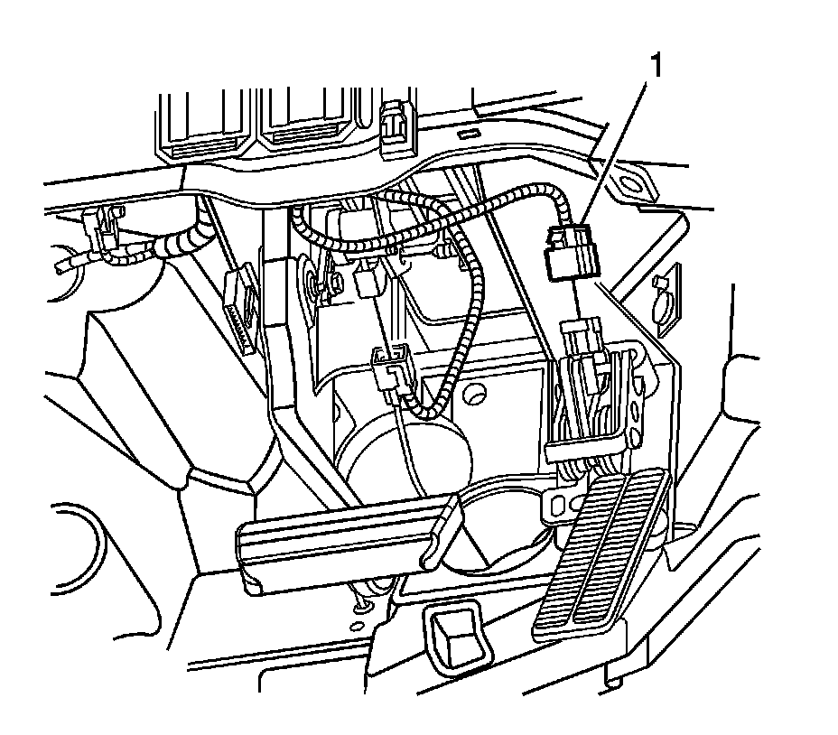2. Disconnect the electrical connector (1) from the accelerator pedal sensor module.
