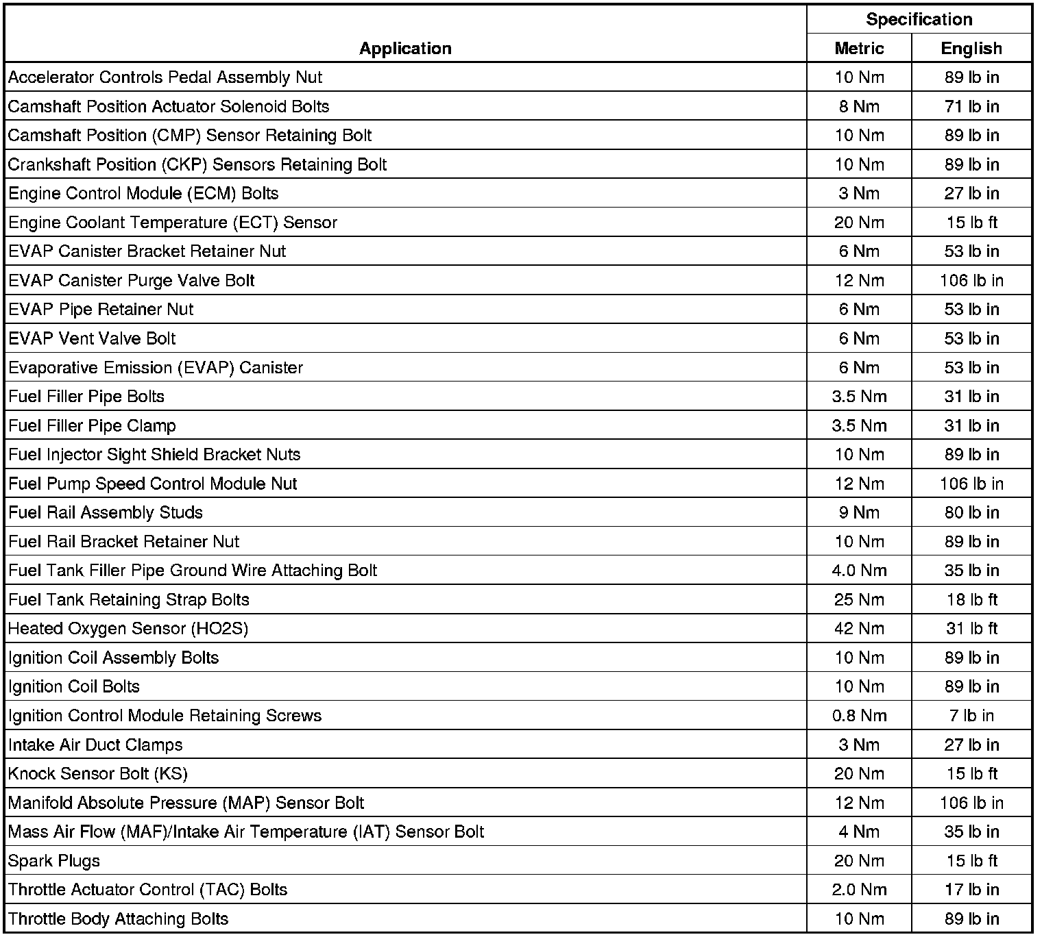 Fastener Tightening Specifications